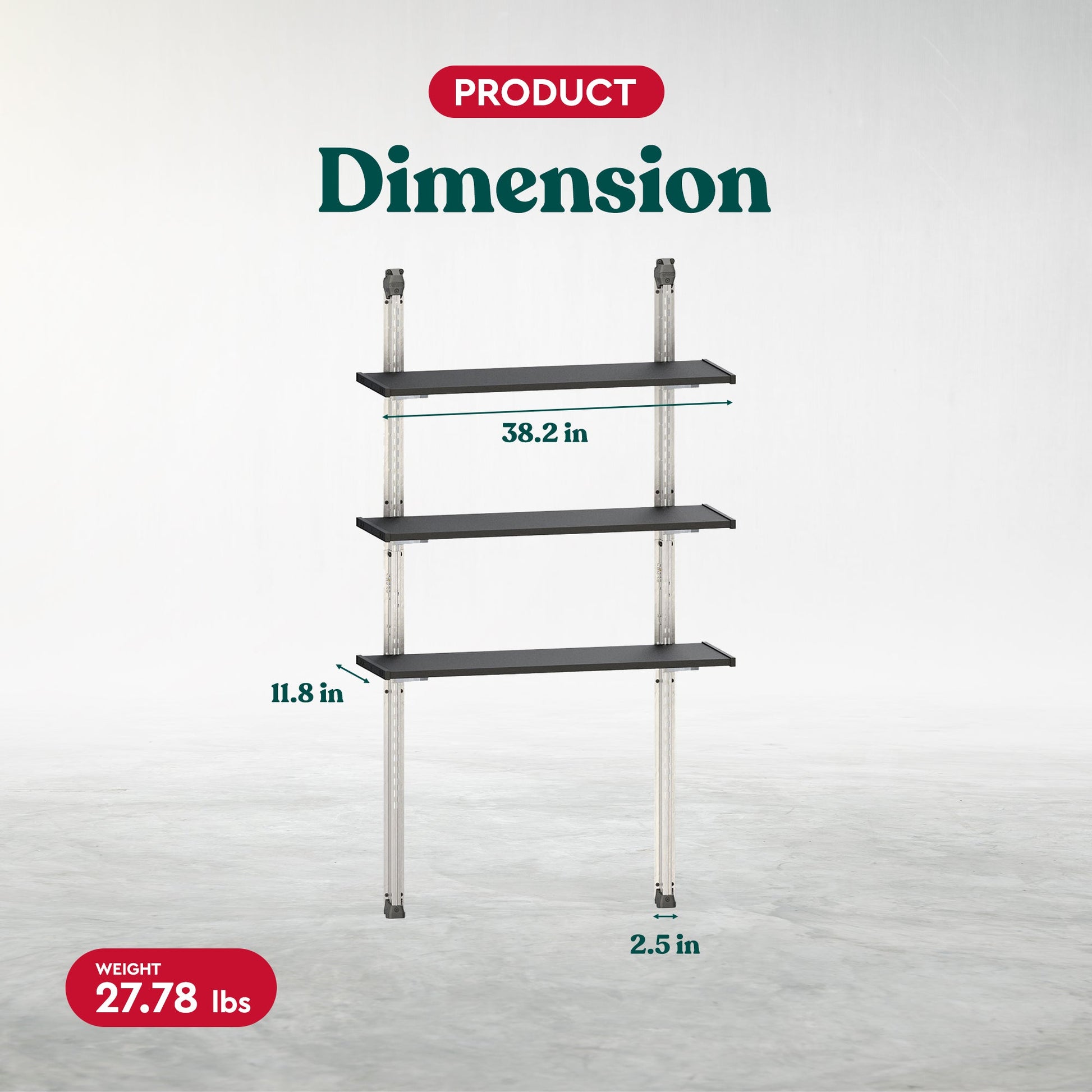 Designed to elevate any outdoor storage space, this kit boasts 3 generously sized shelves, providing ample room to neatly arrange gardening tools, supplies, and more. Not only does it optimize storage capacity, but it also frees up valuable floor space, allowing you to effortlessly accommodate larger items and create a clutter-free environment.