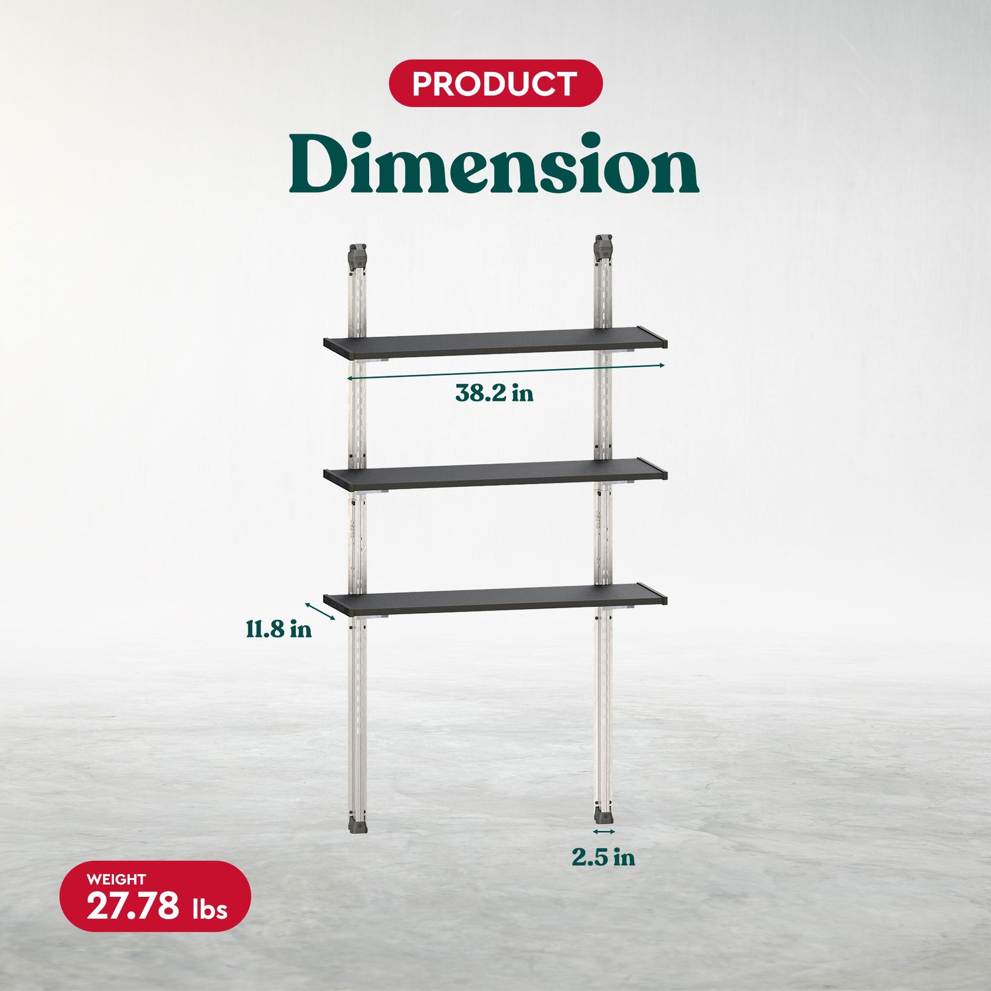 - Dimensions (L x W x H): 2.5 x 11.8 x 38.2 inches
