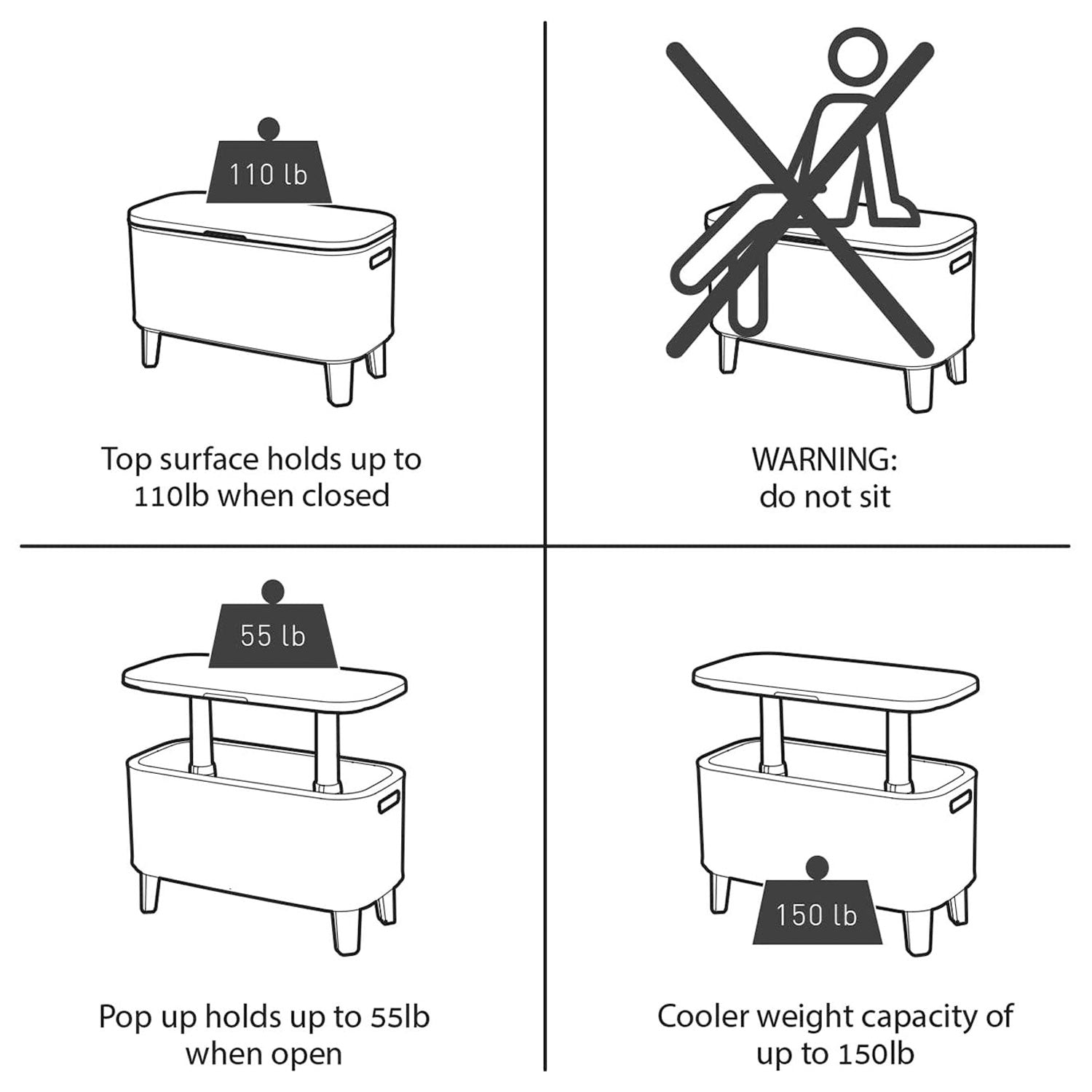 Perfect for weekend get-togethers or family celebrations, this hot tub side table features a large 17-gallon open ice compartment for keeping drinks chilled and within reach for your guests. The serving station is ideal for placing drinks, snacks, utensils, and so much more. The possibilities are endless with the 55-pound tabletop capacity.