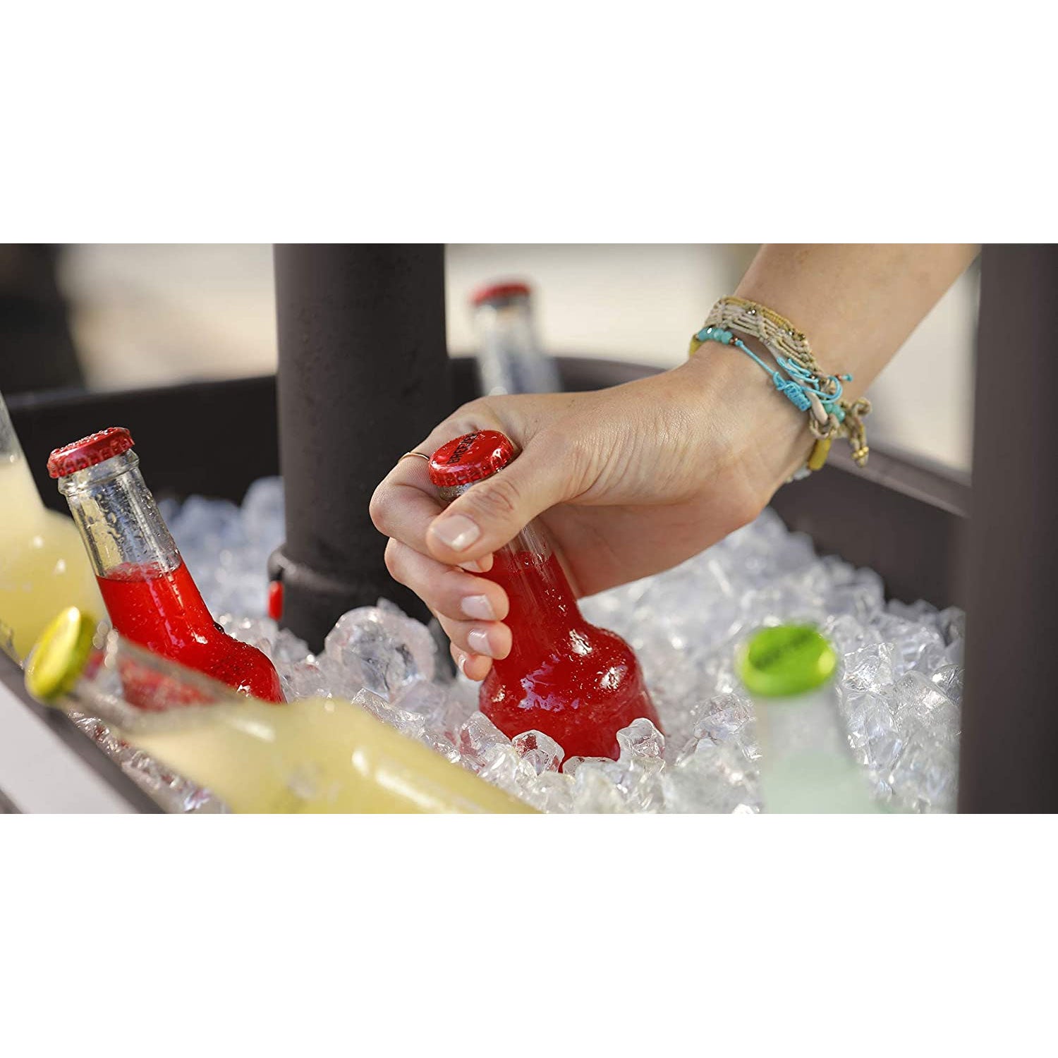 - Generous-sized ice bin provides 17 gallons of space to cool your favorite drinks with easy-access for guests; Holds up to 130 cans or 65 bottles