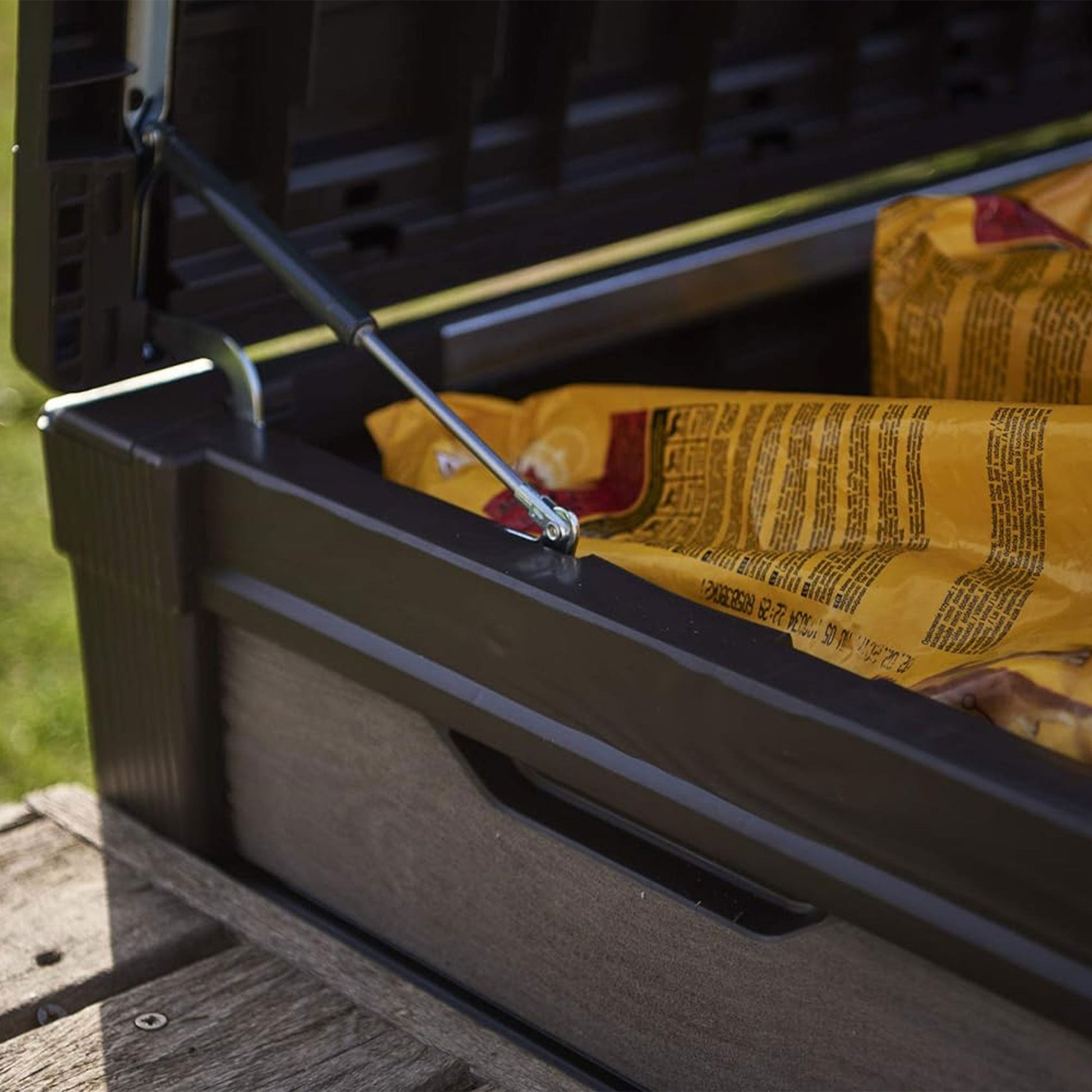 Bring your patio decor to the next level and incorporate this elegant plastic rattan-style piece of furniture into your layout. Doubling as an outdoor storage bench, with a total weight capacity of 661 pounds, you and your partner can store away any extra furniture and sit together. With a soft-close mechanism and a surface that is simple to clean, this storage organizer is convenient and will fit seamlessly into your everyday routine.