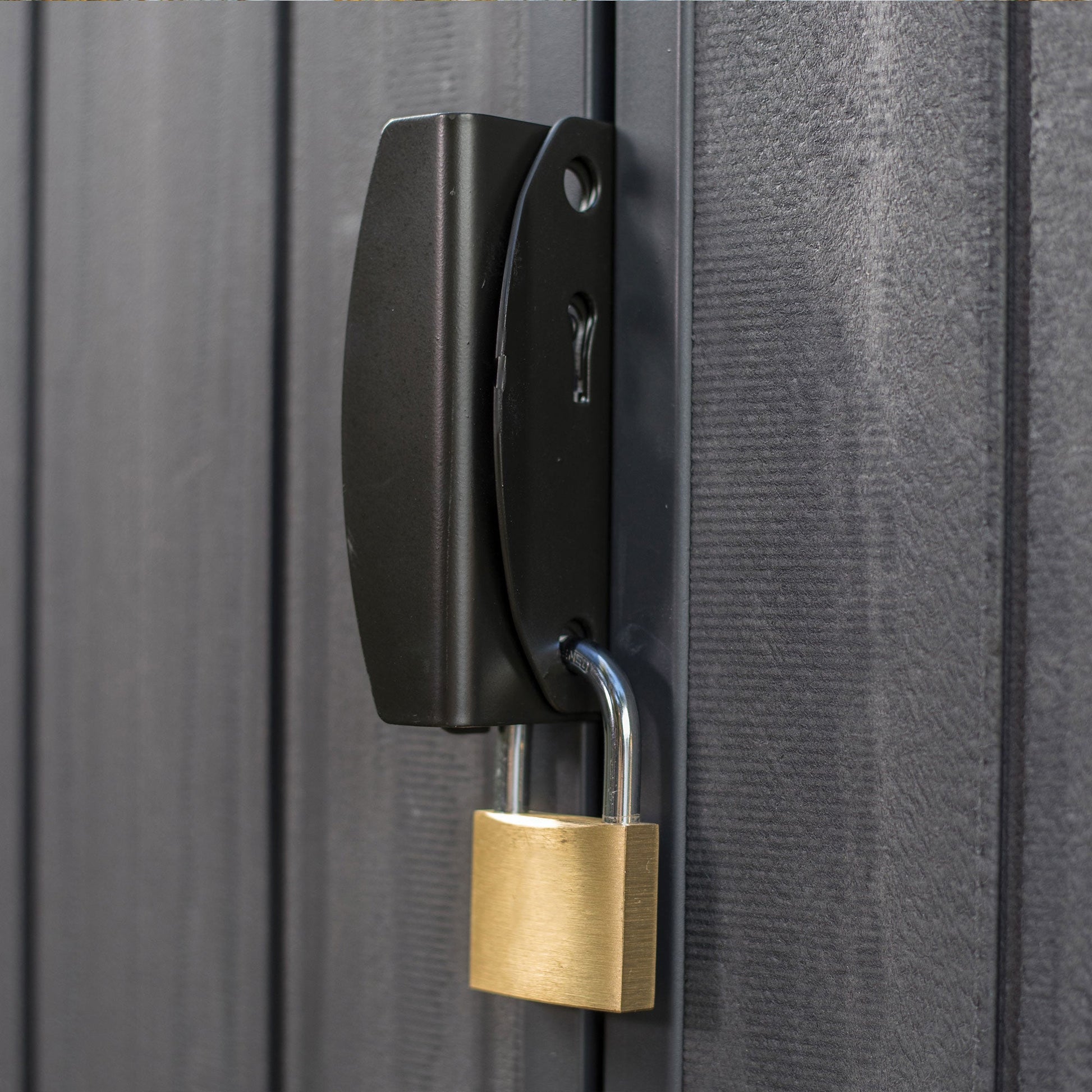 Designed with polypropylene plastic, this durable resin shed is weather-proof. Just spray the exterior clean with a hose as needed. The included side window allows plenty of natural light to enter the narrow shed, making all the contents easily visible. The spacious and well-lit interior of the yard shed also features a ventilation grille that retains fresh air and protects all your garden accessories.