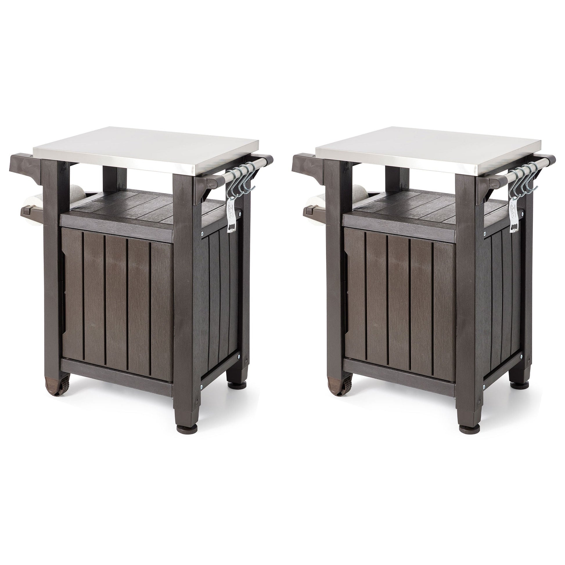 Have all your barbecuing needs in arms reach with this Set of 2 Keter Unity Patio Bar Carts.