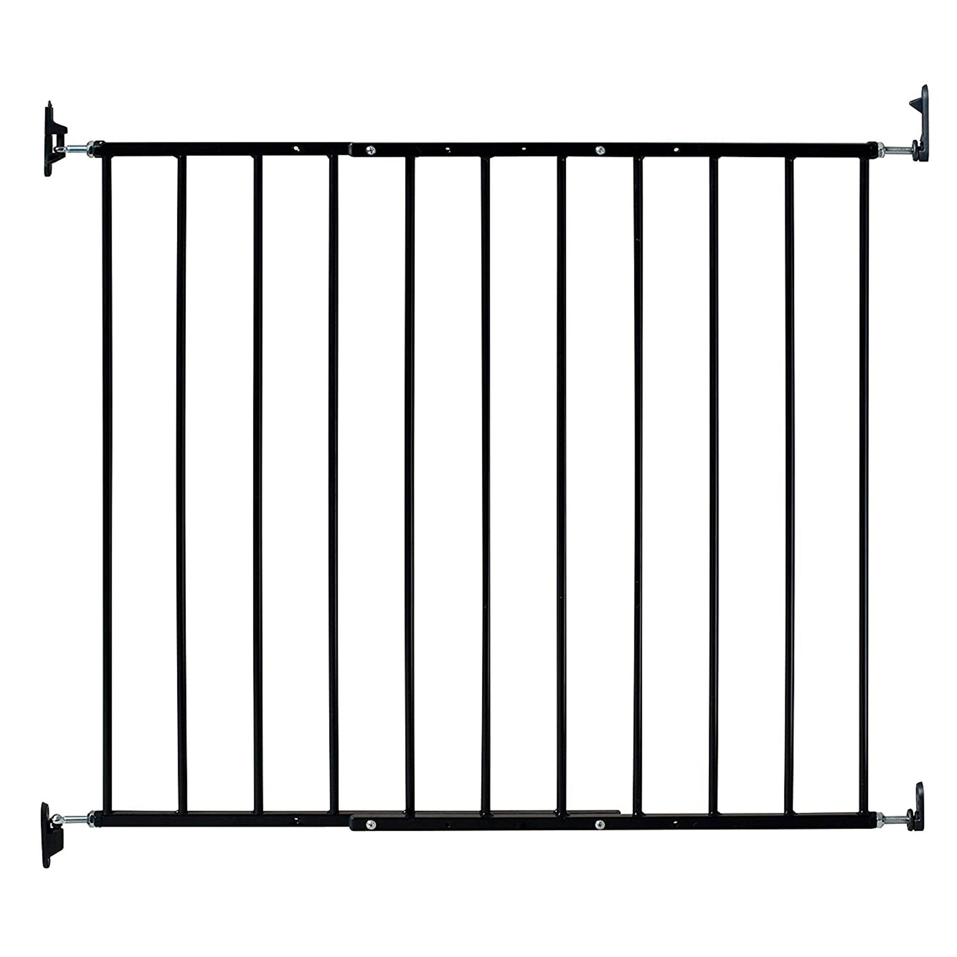 Constructed from heavy-duty steel, the gates feature a non-toxic powder coat that resists corrosion and damage while remaining safe for use around pets and infants. Designed specifically for stairs, the gate also blocks hallways, divides rooms, and secures high-traffic corridors, helping keep infants and even smaller pets away from dangerous thoroughfares. The stairway gates fit any opening as small as 24.75 inches up to 42.5 inches wide, great for adapting to different doorway sizes.