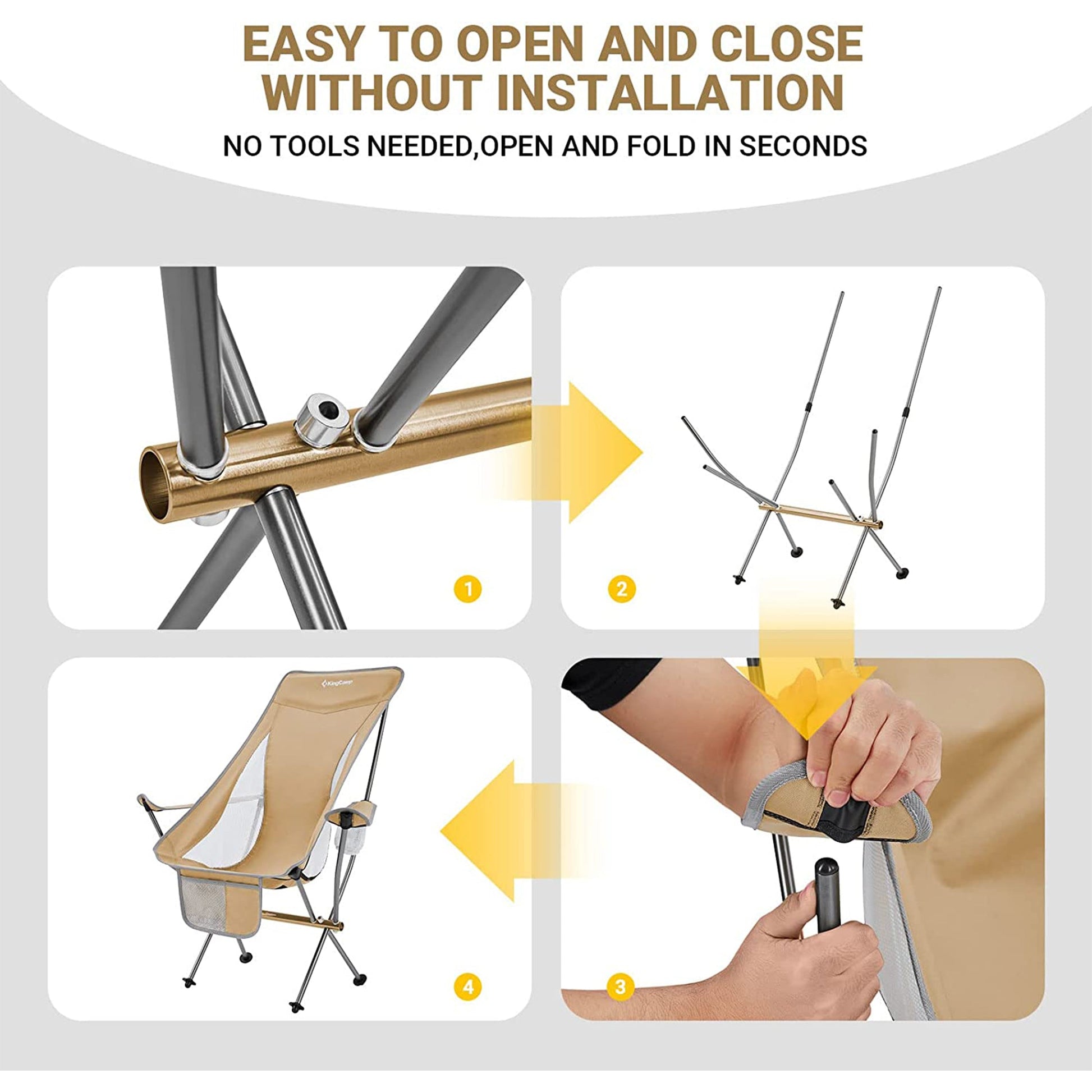KingCamp Lightweight Highback Camp Lounge Chair with Cupholder & Pocket, Khaki