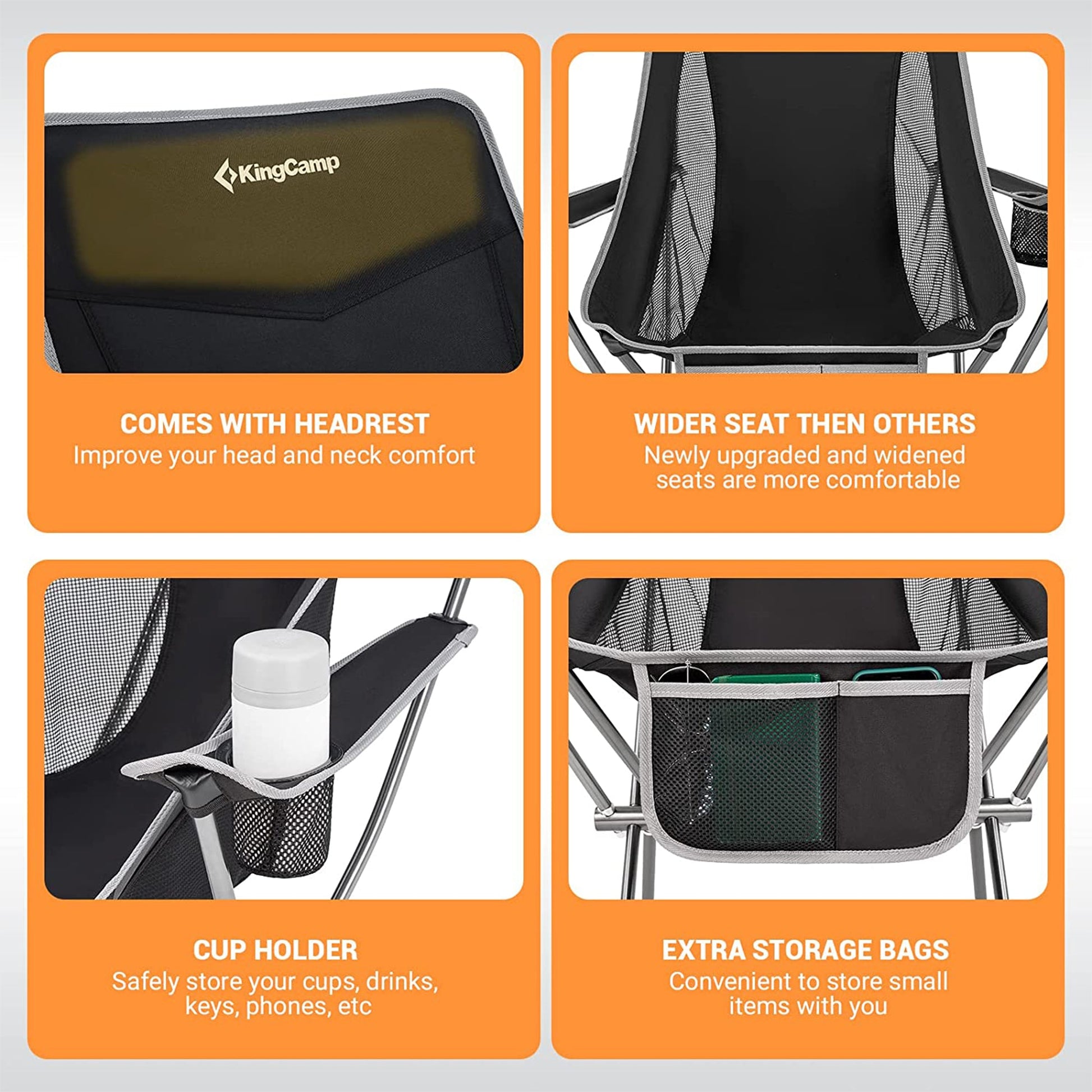 KingCamp Lightweight Highback Camping Chair with Cupholder & Pocket, Black/Grey