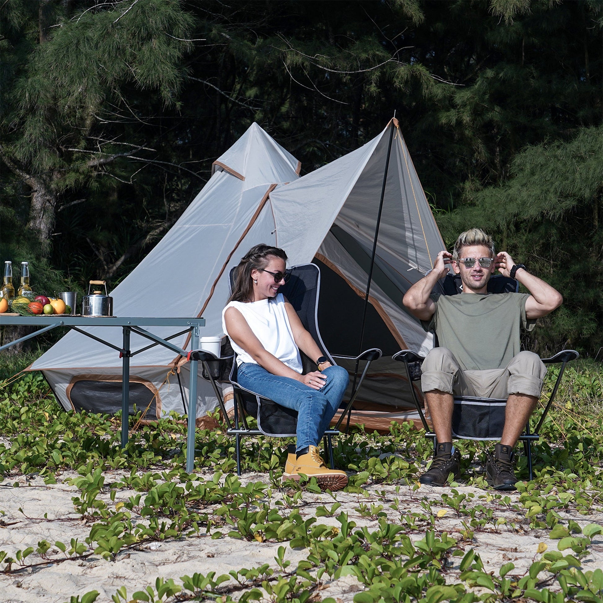 Designed for maximum comfort, this chair features a padded headrest, and an ergonomic high back provides utmost support and relaxation, while the soft armrests keep you well-suited throughout your camping journey. The mesh back is breathable to keep you cool even on hot summer days.