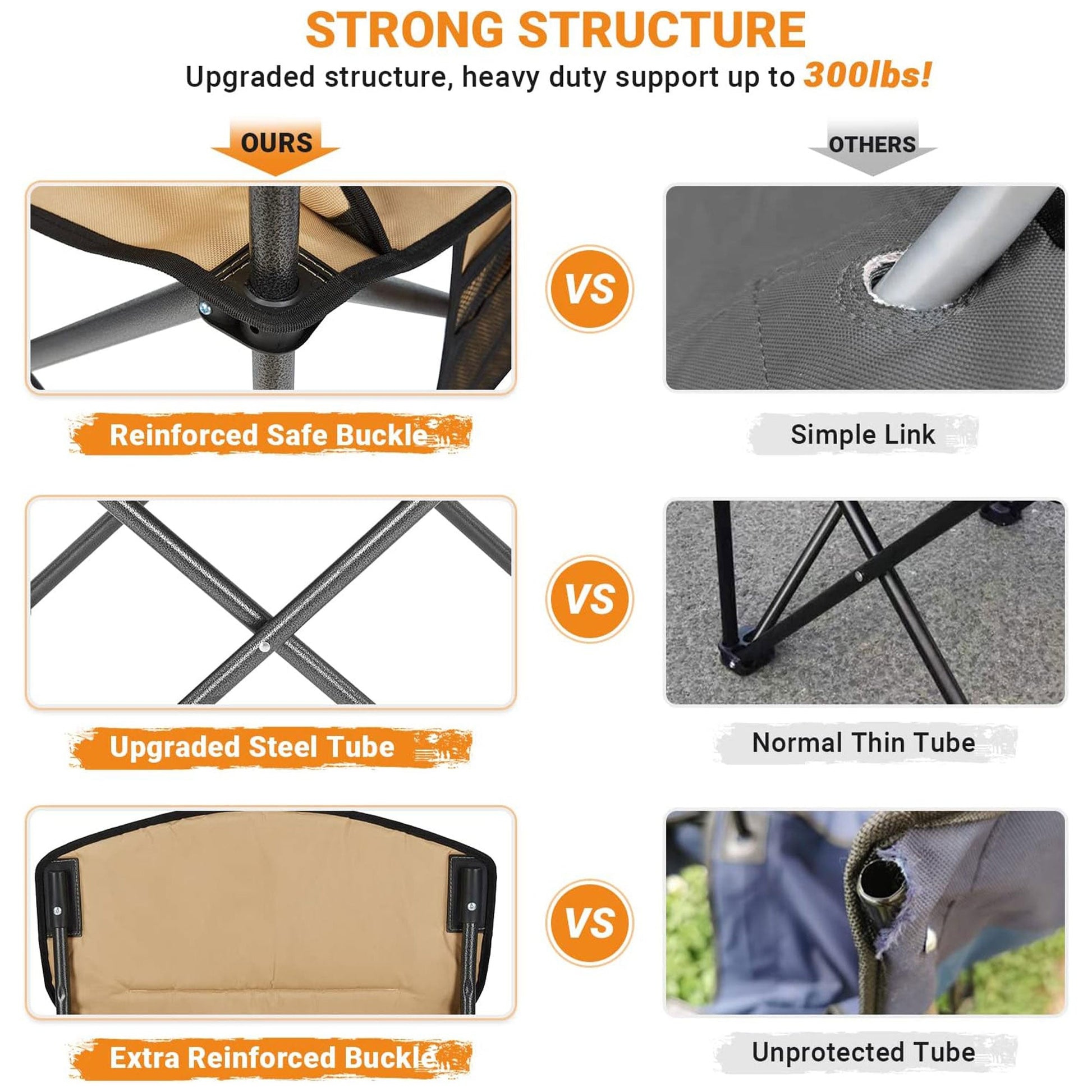 - Set of 2 oversized folding chairs that are ideal for tailgating, camping, fishing, outdoor picnics, or watching your favorite sports teams