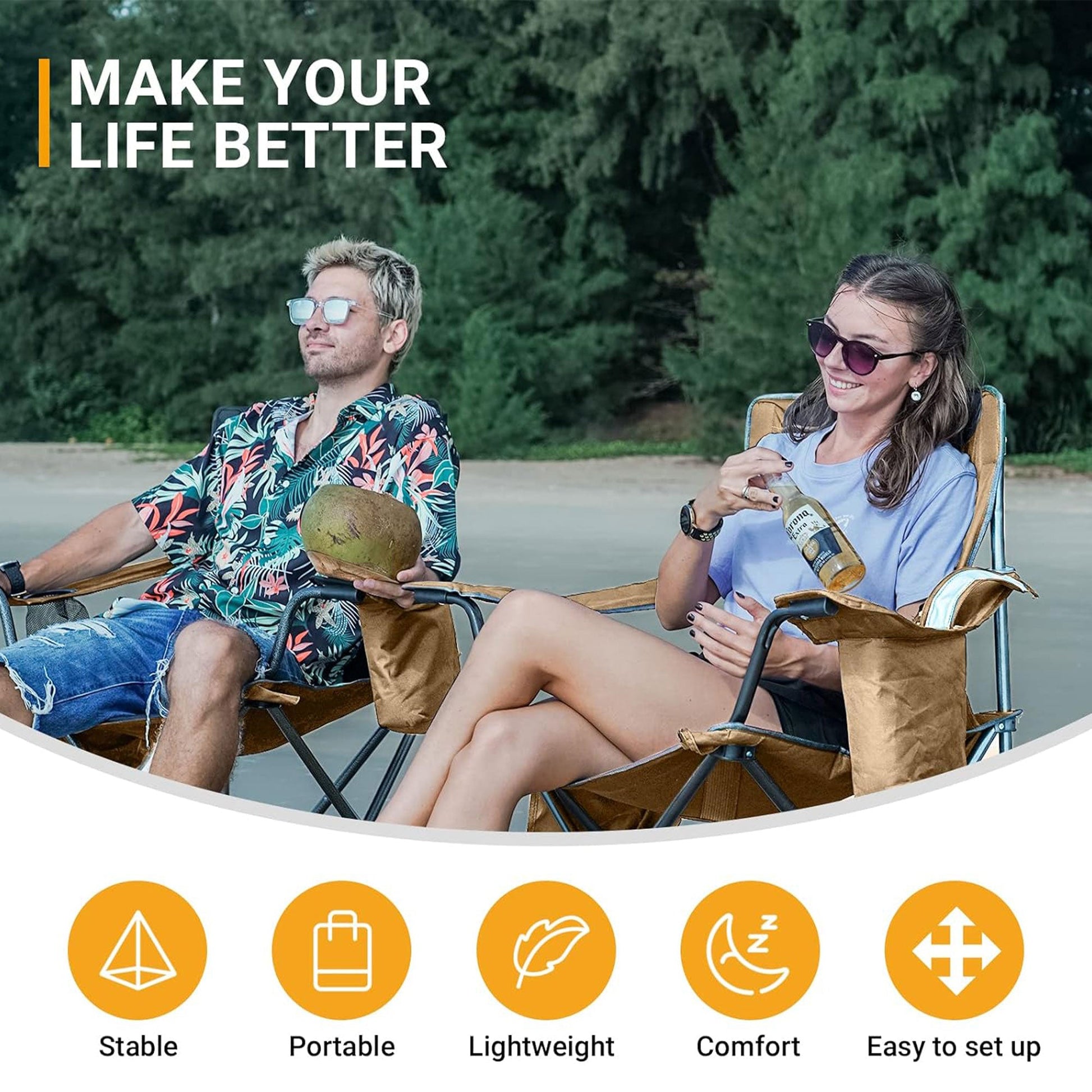 This beach chair's well-designed structure, coupled with practical features, makes it a convenient seating solution for various activities. Enjoy your camping trips, outdoor parties, or fishing trips more with the Padded Folding Chairs made by KingCamp.
