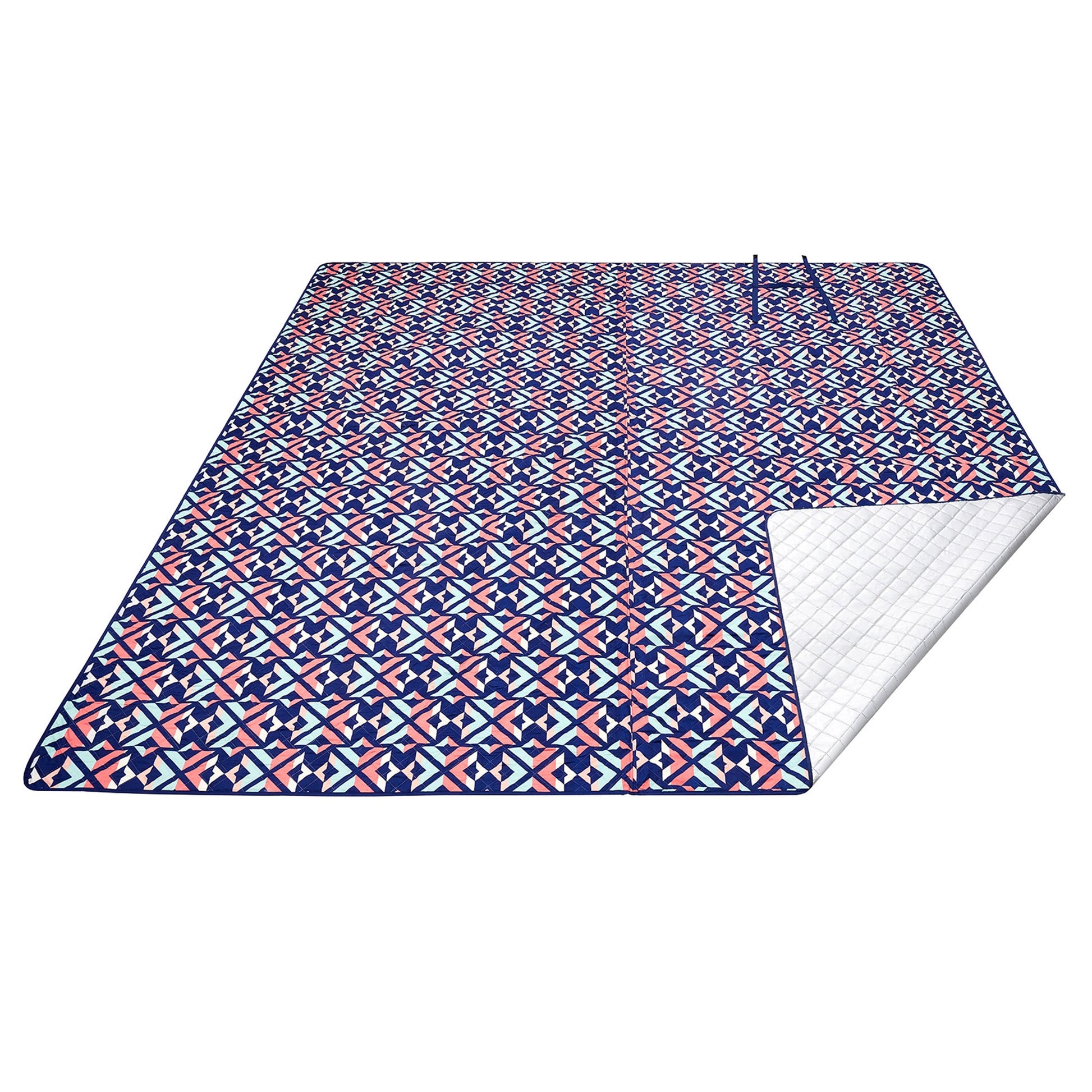 Lightweight and portable, the handle allows you to roll out, fold easily, and transport the square blanket wherever you go with less hassle. This polyester blanket's top fabric resists wear and is soft, even after washing. Measuring 118 by 118 inches, the blanket can accommodate up to 9 to 11 adults.