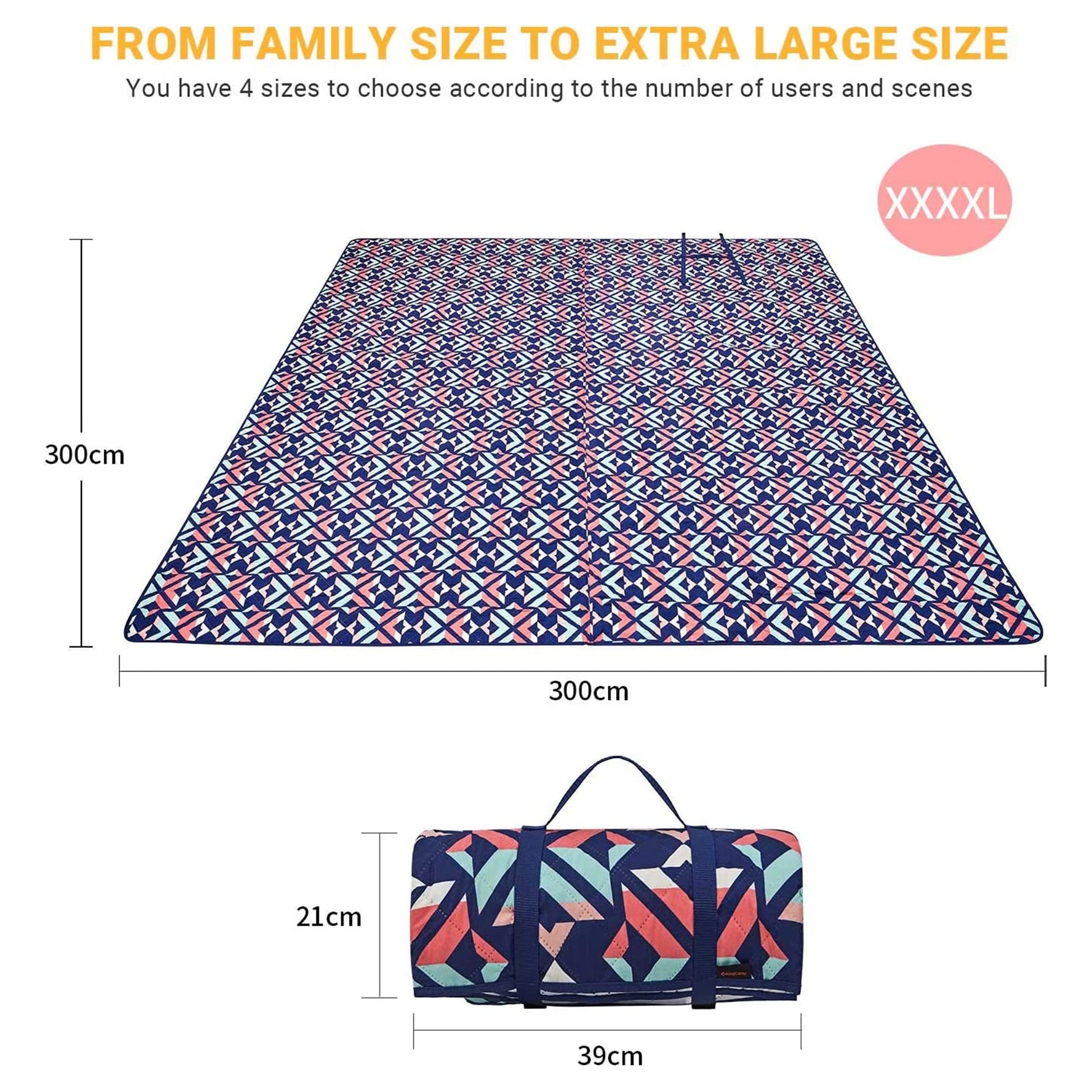 - XXXXL picnic blanket allows you to unwind and sit comfortably anywhere outdoors