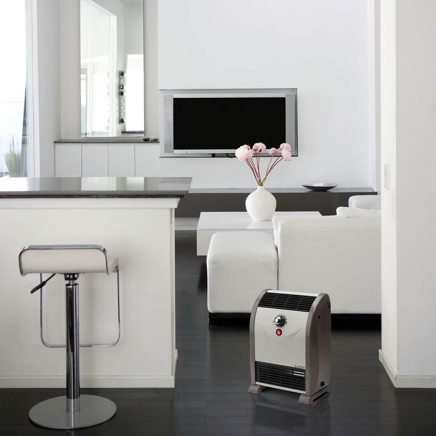 The space saving design is easy to stow away when the temps rise outside and makes it easy to haul around from room to room.