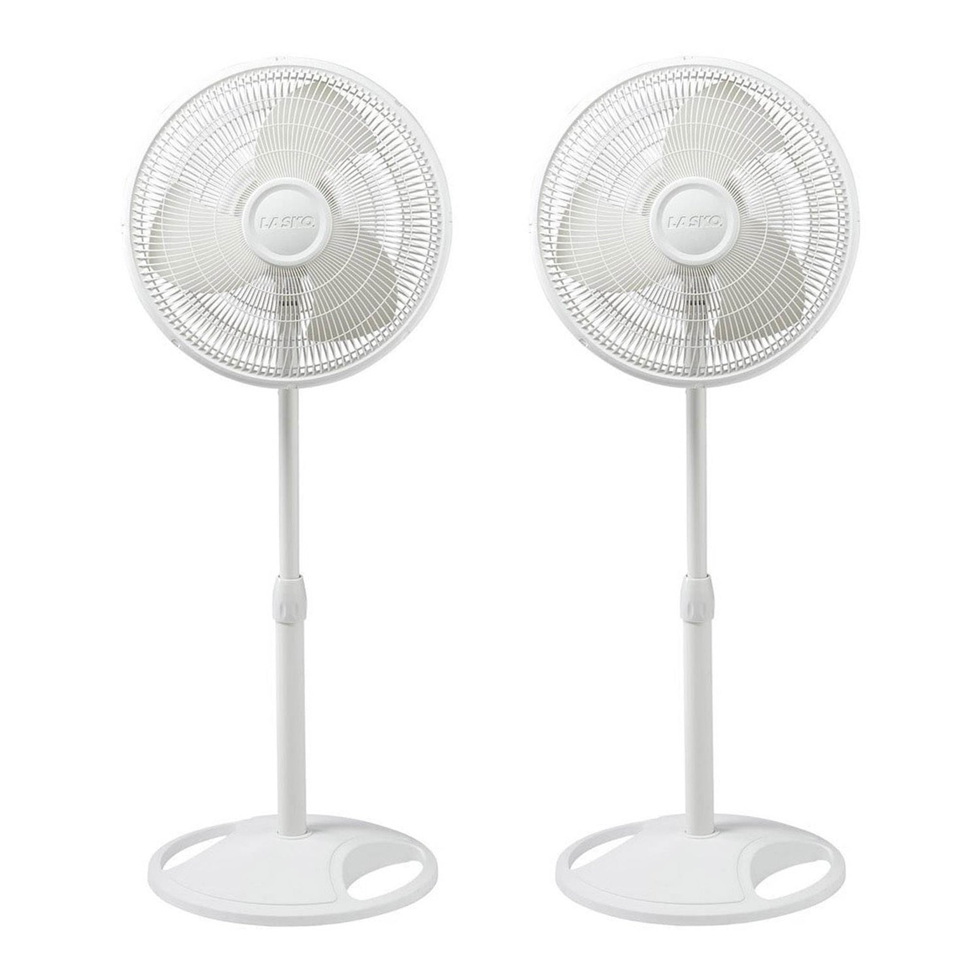 Lasko 16 Inch Oscillating Adjustable Tilting Pedestal Stand Fan, White (2 Pack)