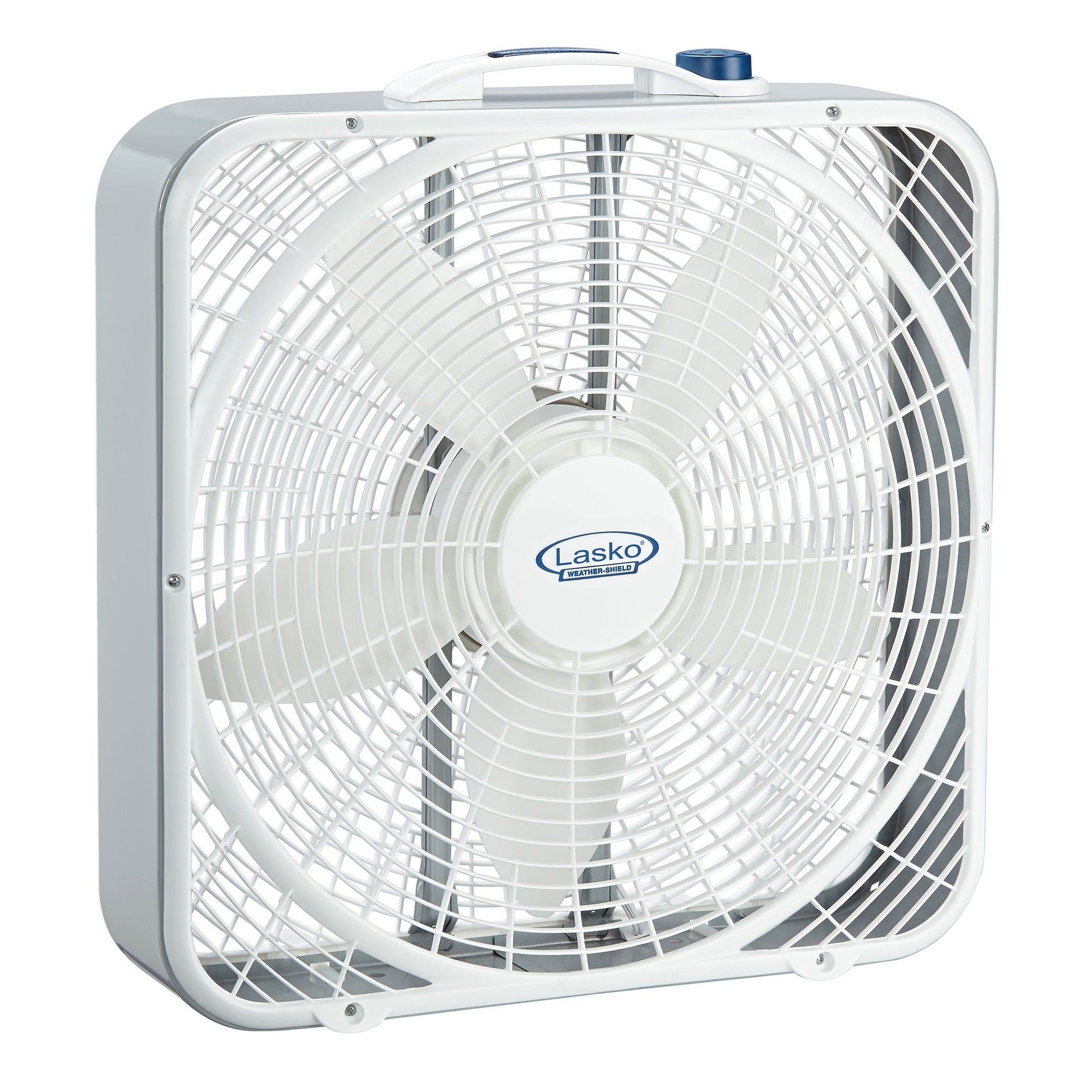 Lasko 20" 3-Speed Weather Shield Performance Box Fan w/ Easy Carry Handle, White