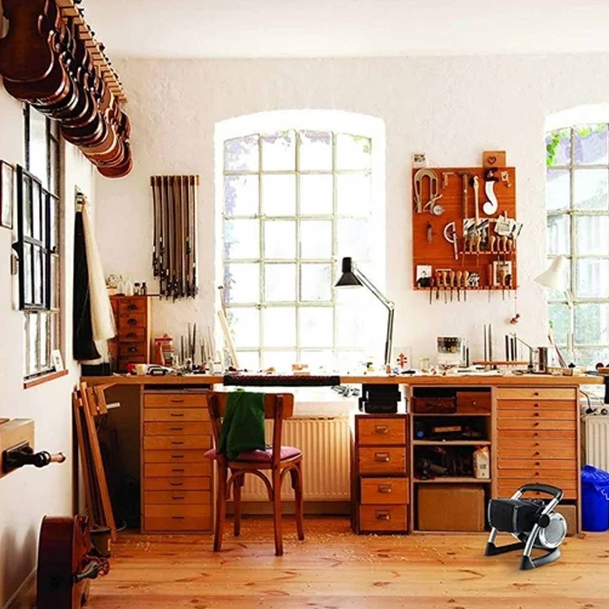 Place this utility space heater to any worksite. Thanks to a built-in carry handle and cool-to-touch housing, the space heater moves easily. Its compact design fits anywhere, measuring 11.5 inches long, 8.5 inches wide, and 11 inches tall.