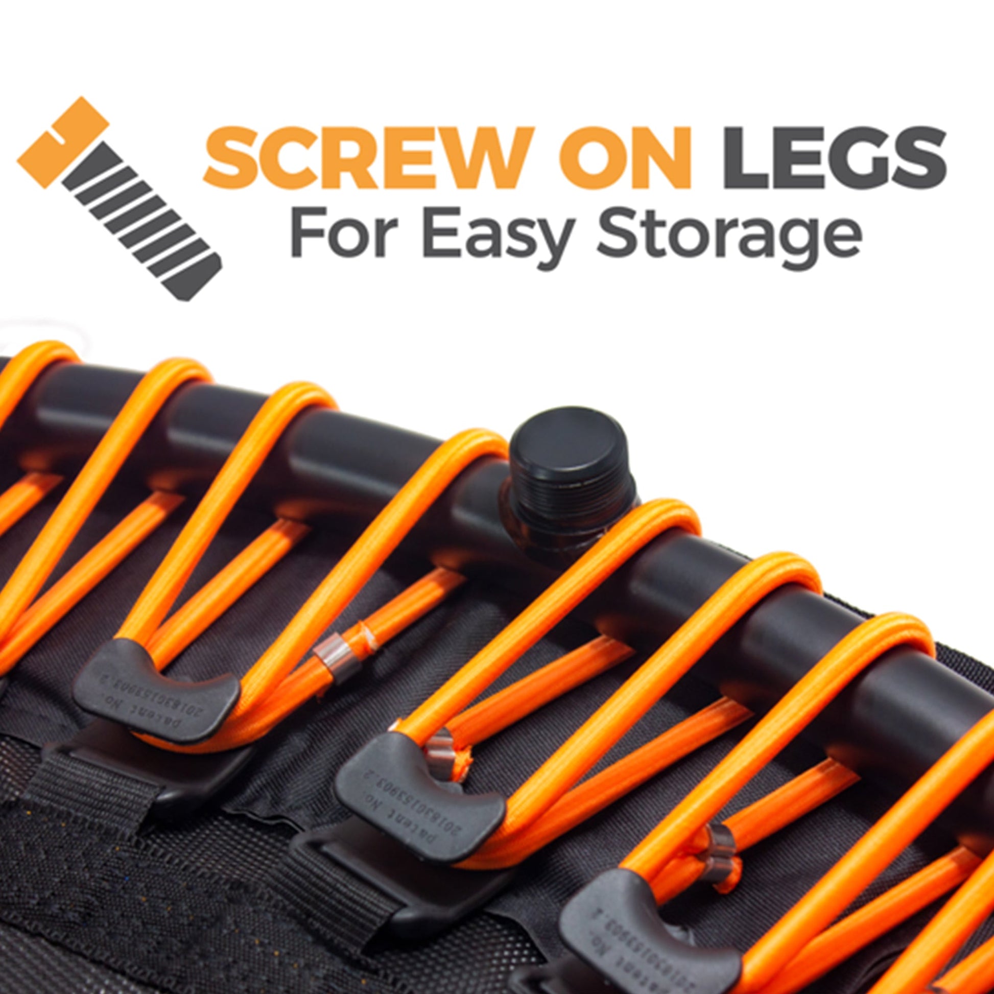 - Attach the bar to any 2 trampoline legs for simple assembly by slipping around the legs and reattaching the legs