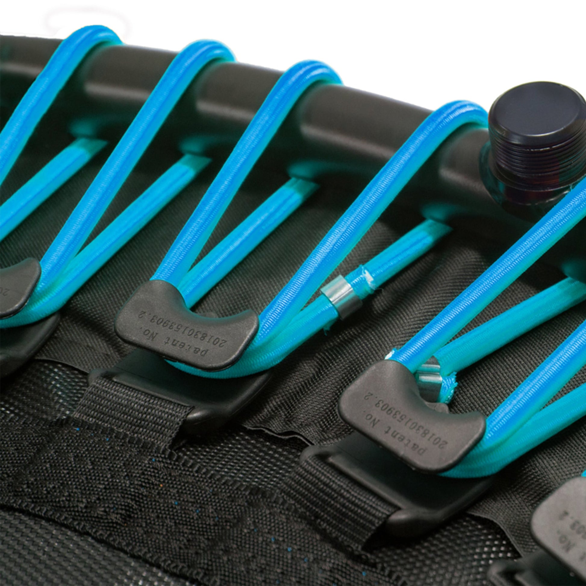 - Features quiet bungees with a firm bounce for solid, safe jumping without distracting noises