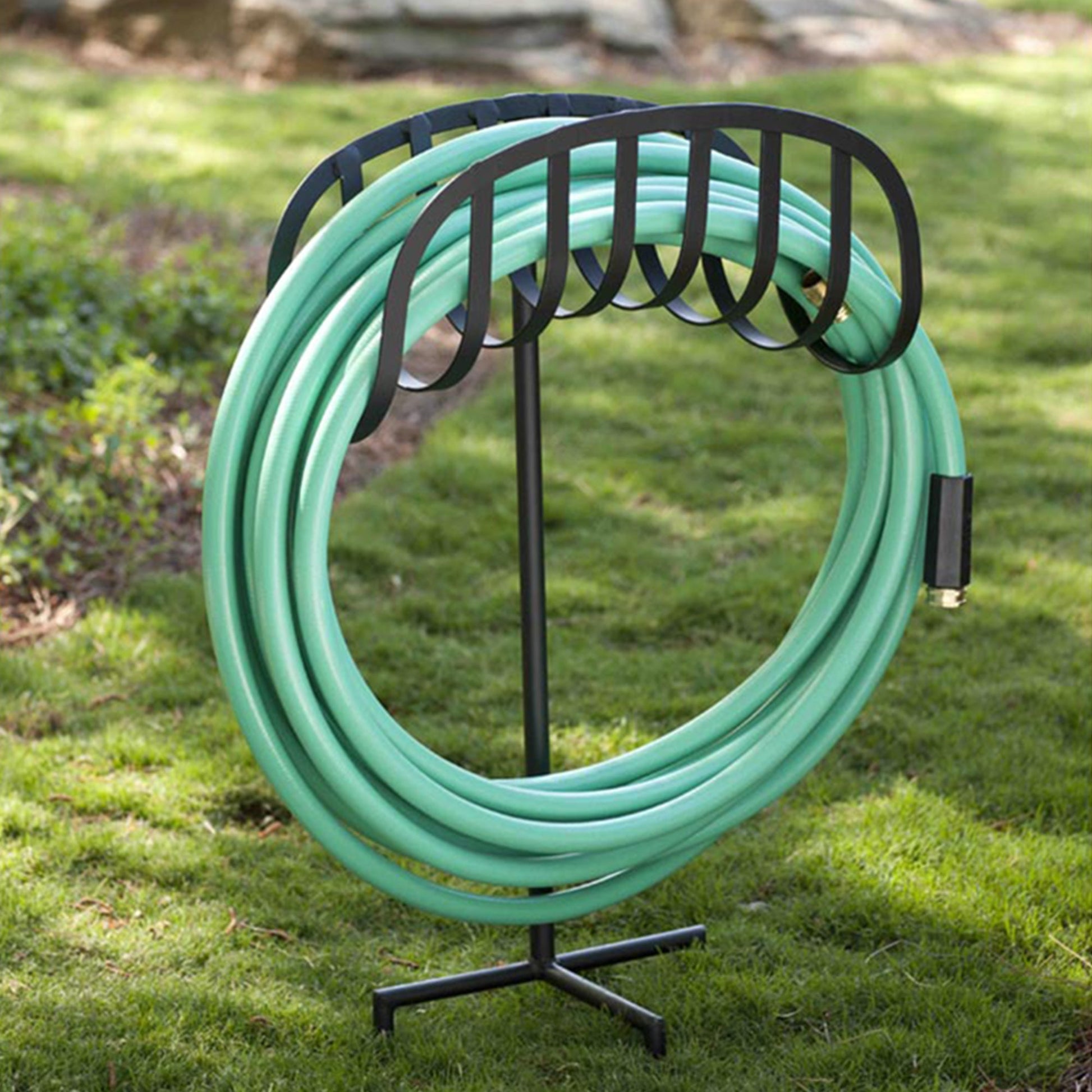 Crafted from durable heavy gauge steel, this modern-designed stand is capable of holding up to 125-feet of 5/8-inch hose. With 3-prong anchor support, this stand will stay solid and secure while easily fitting in with your lawn or patio decor.