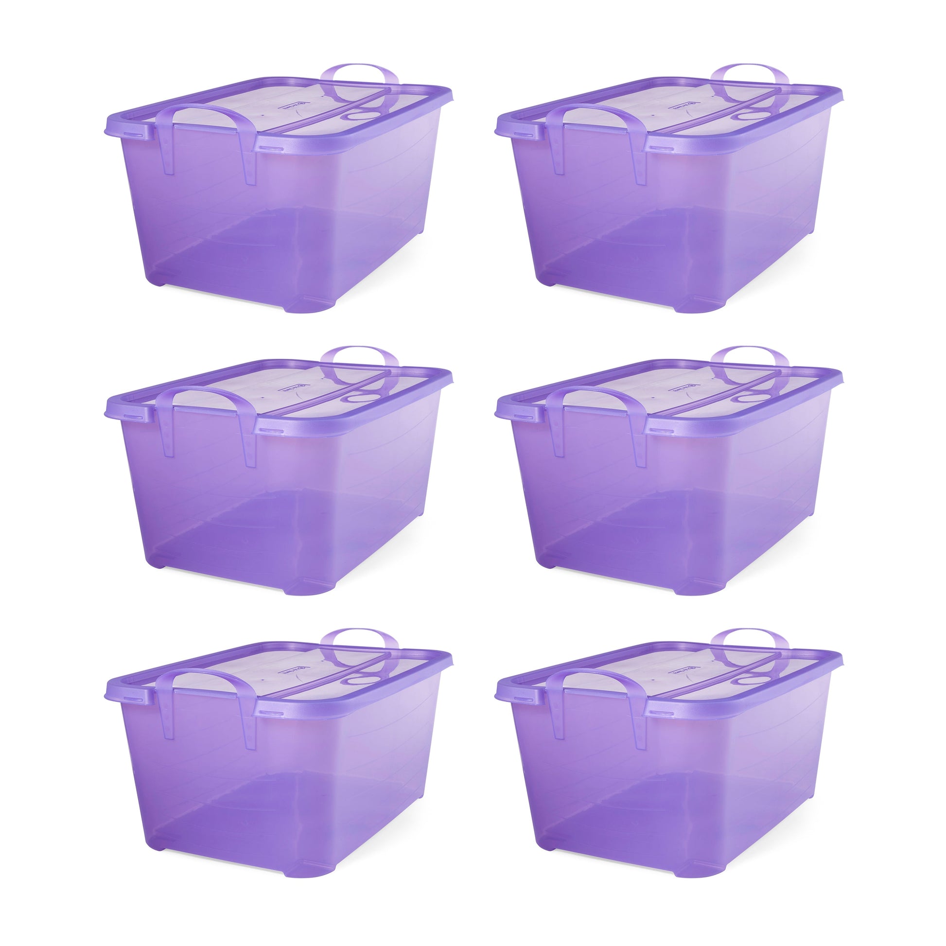 Life Story 55 Quart Stackable Storage Bin, Light Duty Container, Purple, 6 Pack