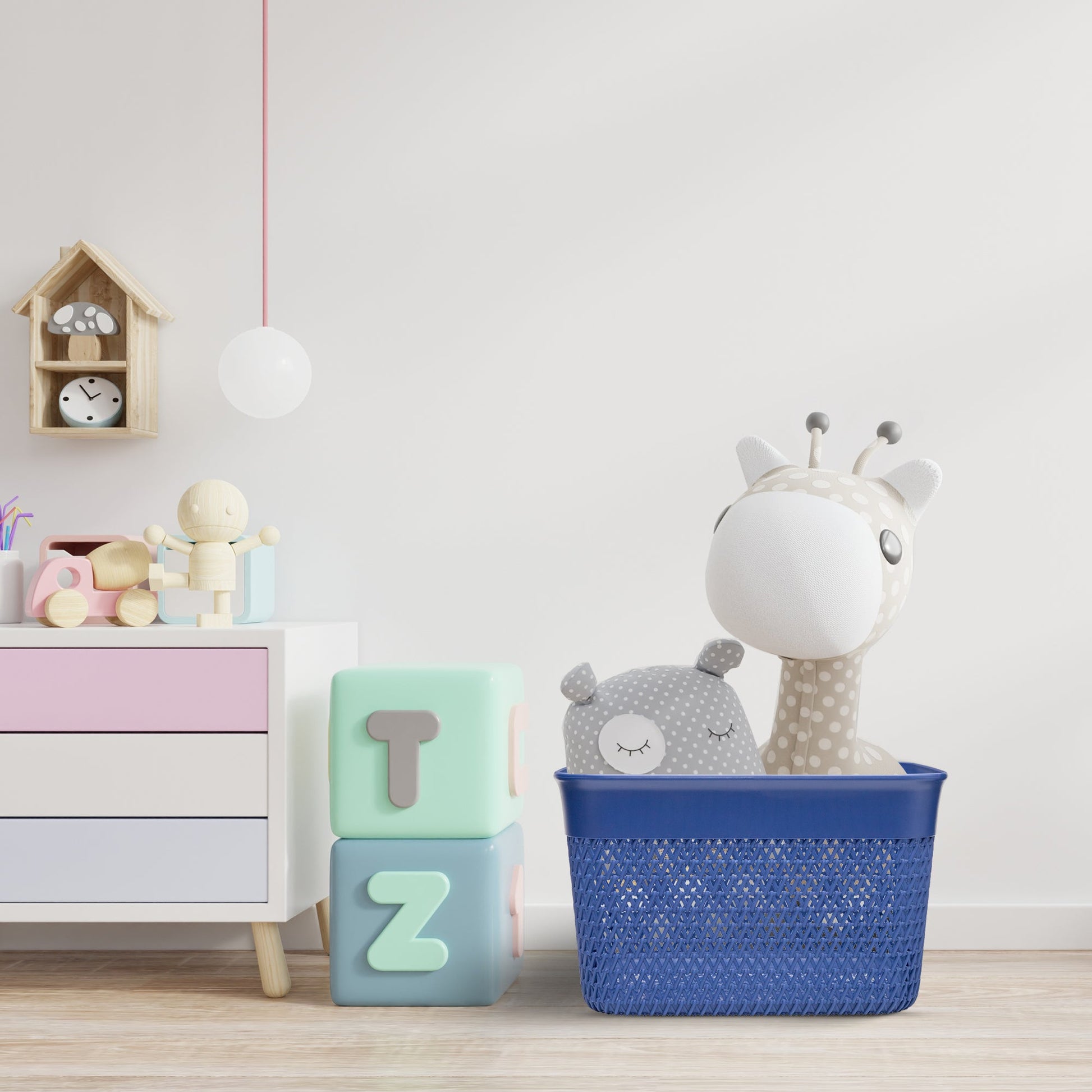 Life Story Lightweight Heavy Duty Storage Woven Trendy Basket 16 Quarts, Blue