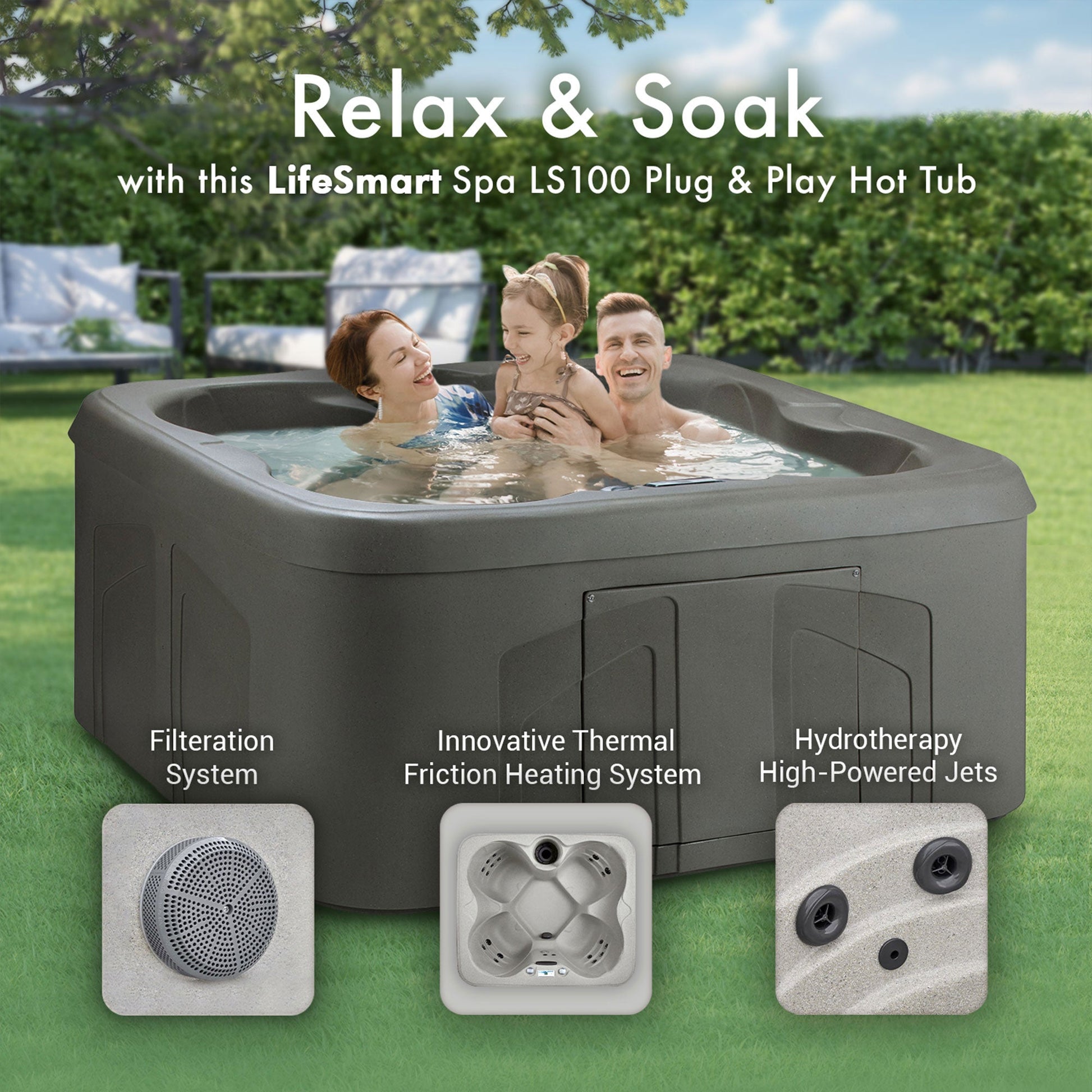 - LifeSmart LS100 Taupe 4 Person Plug and Play Square Hot Tub Spa with Black Cover