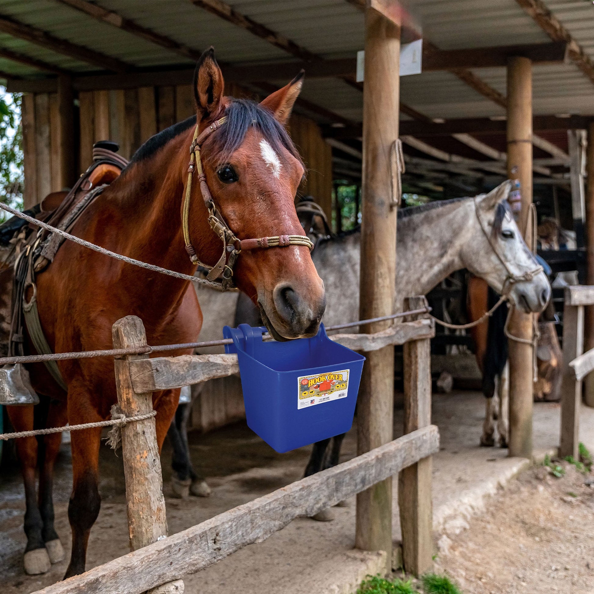 Crafted with precision, this livestock accessory features an ergonomic design revolutionizes feeding solutions. Equipped with sturdy hooks on the back, this plastic bucket seamlessly mounts on any 2-by-wide board or rail, ensuring a hassle-free experience. Engineered for resilience, the bucket is constructed from a high-grade polyethylene plastic, making it ultra-durable. Resisting impact and adept at fending off warpage and stress cracks, this feeder guarantees longevity in the face of rugged use.