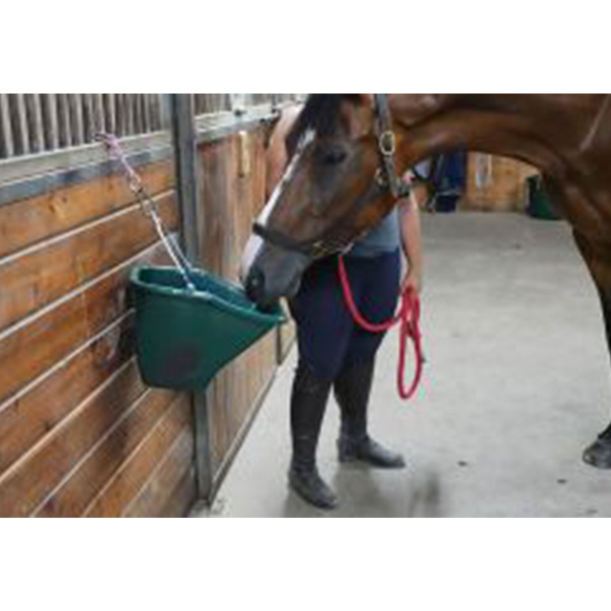 - Patented, ergonomically designed feeding bucket for horses, cattle, and other livestock