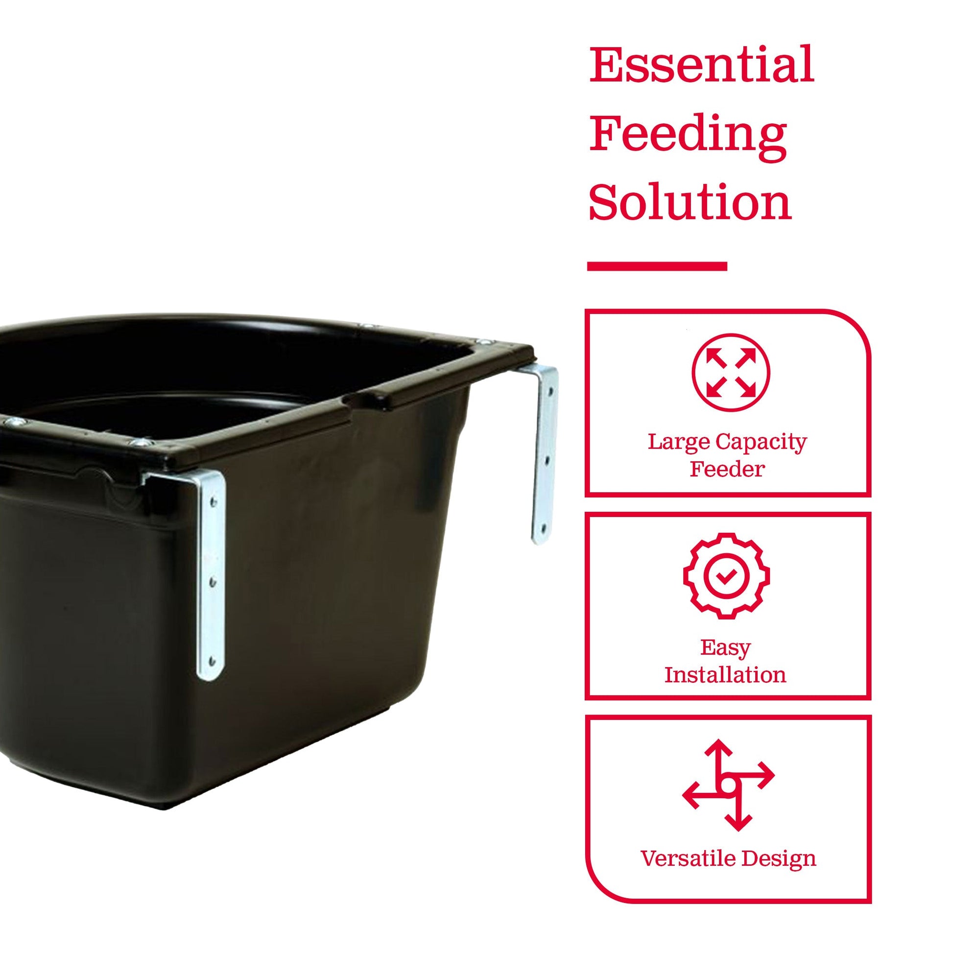 - Metal bracket on the back of the feeder allows you to mount this bucket easily to fencing