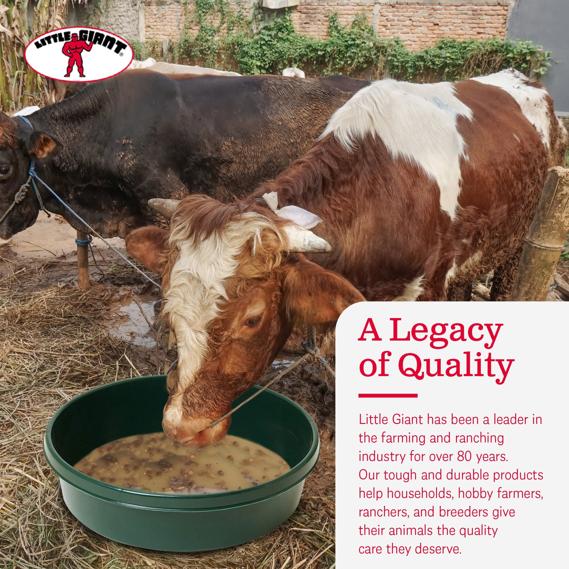 This patented, ergonomically designed Little Giant 3 Gallon Durable Plastic Flat Livestock Feed Utility Pan 2-Pack is excellent for pets and other livestock.