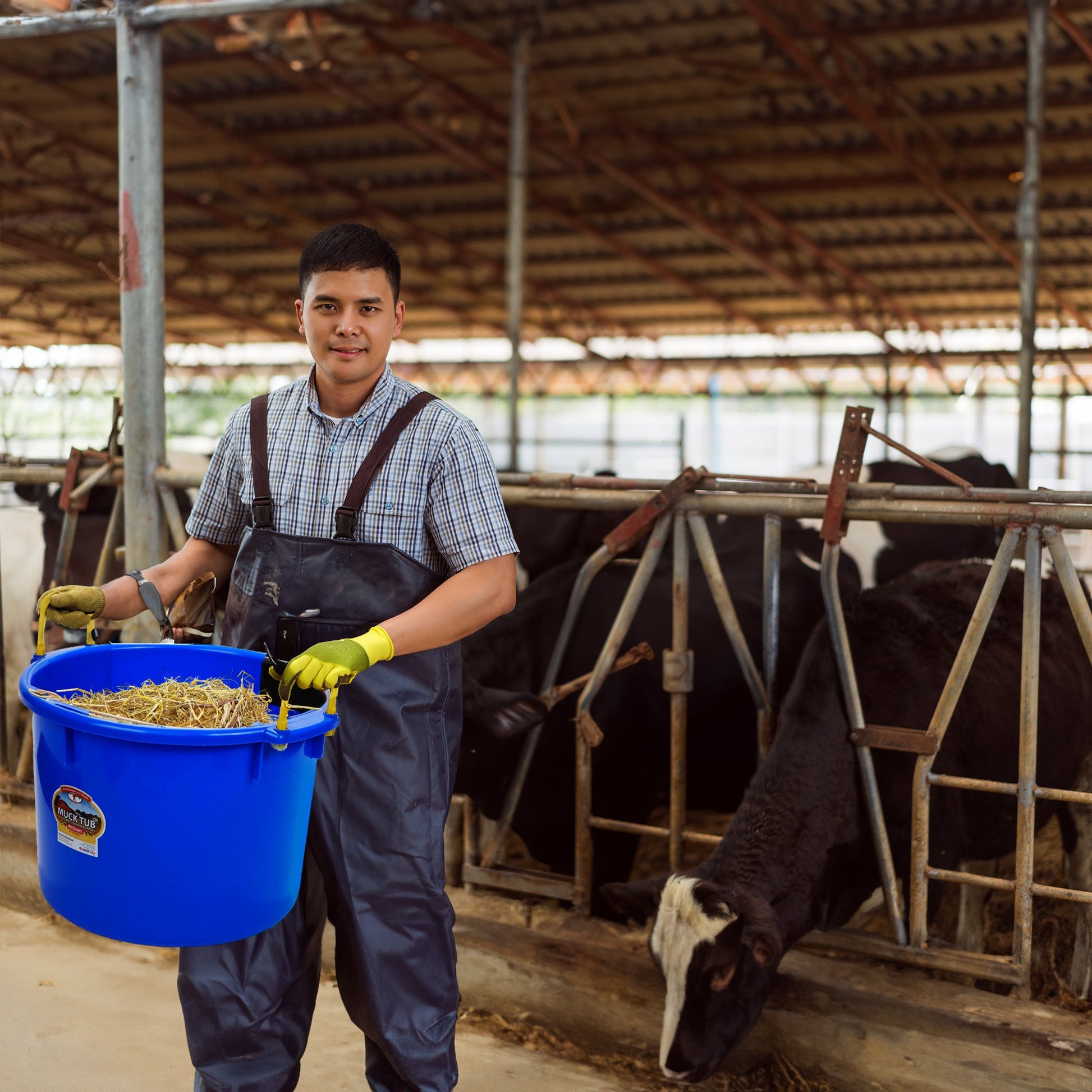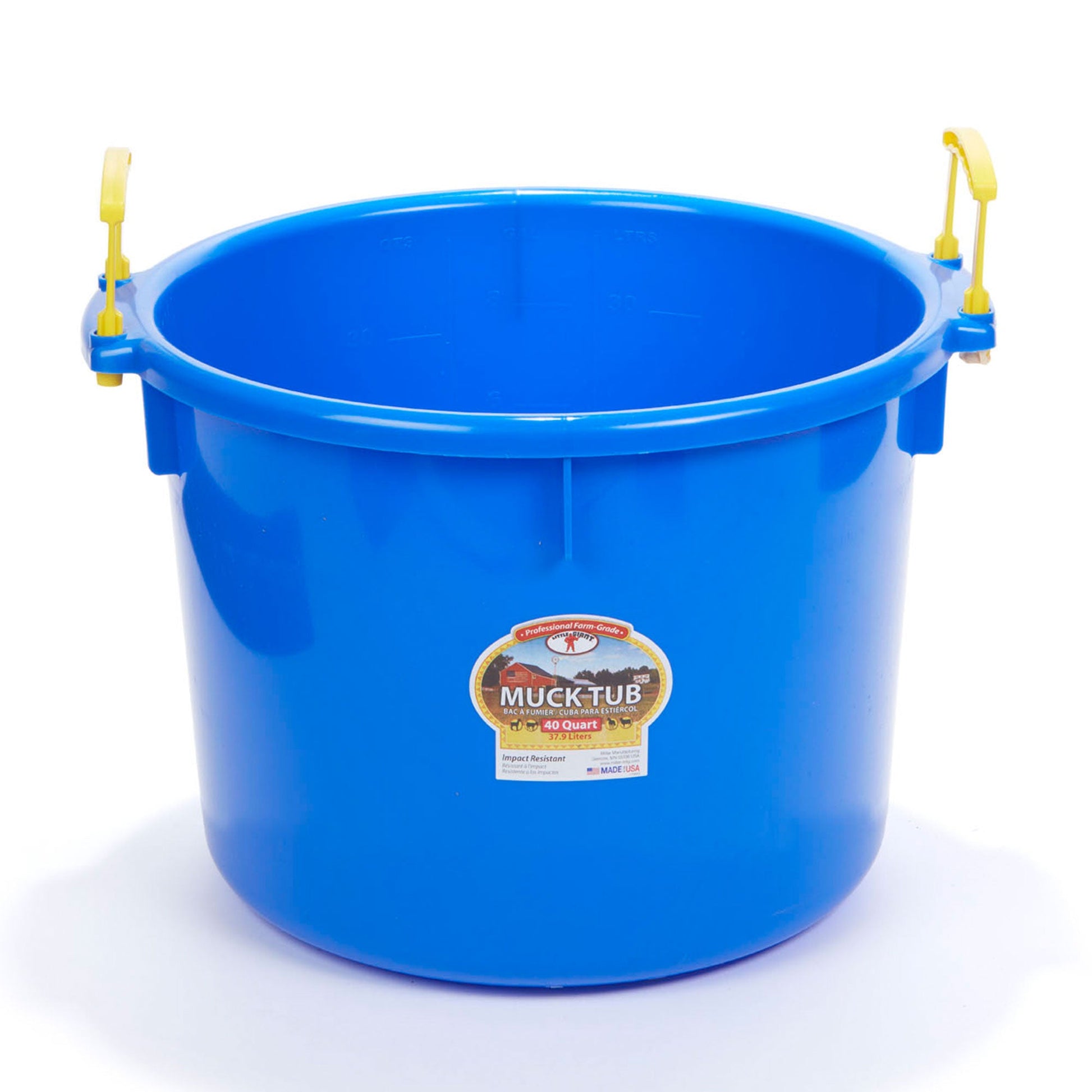 - Multi-purpose 40-quart plastic tote bucket ideal for mucking, barn cleanup, and gardening