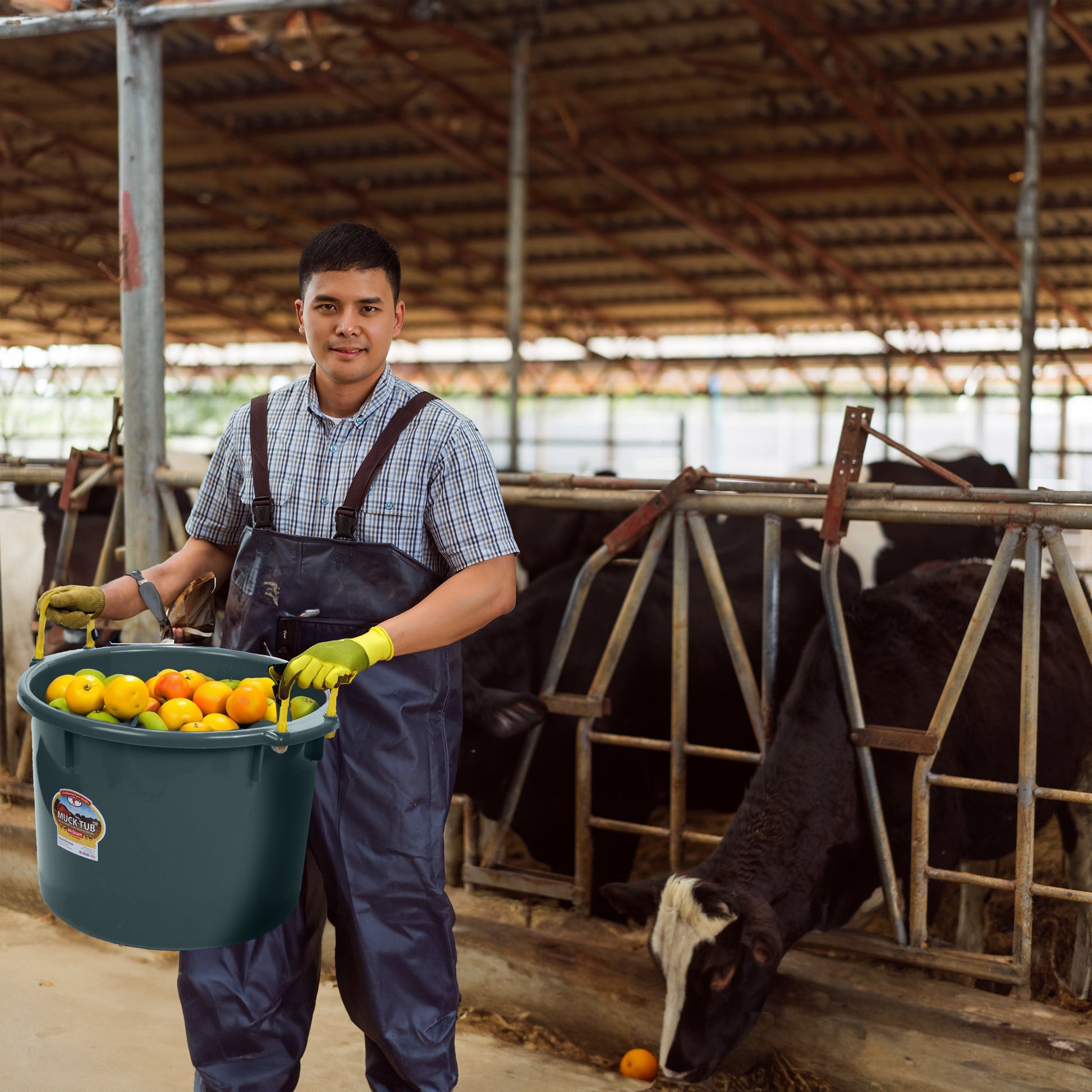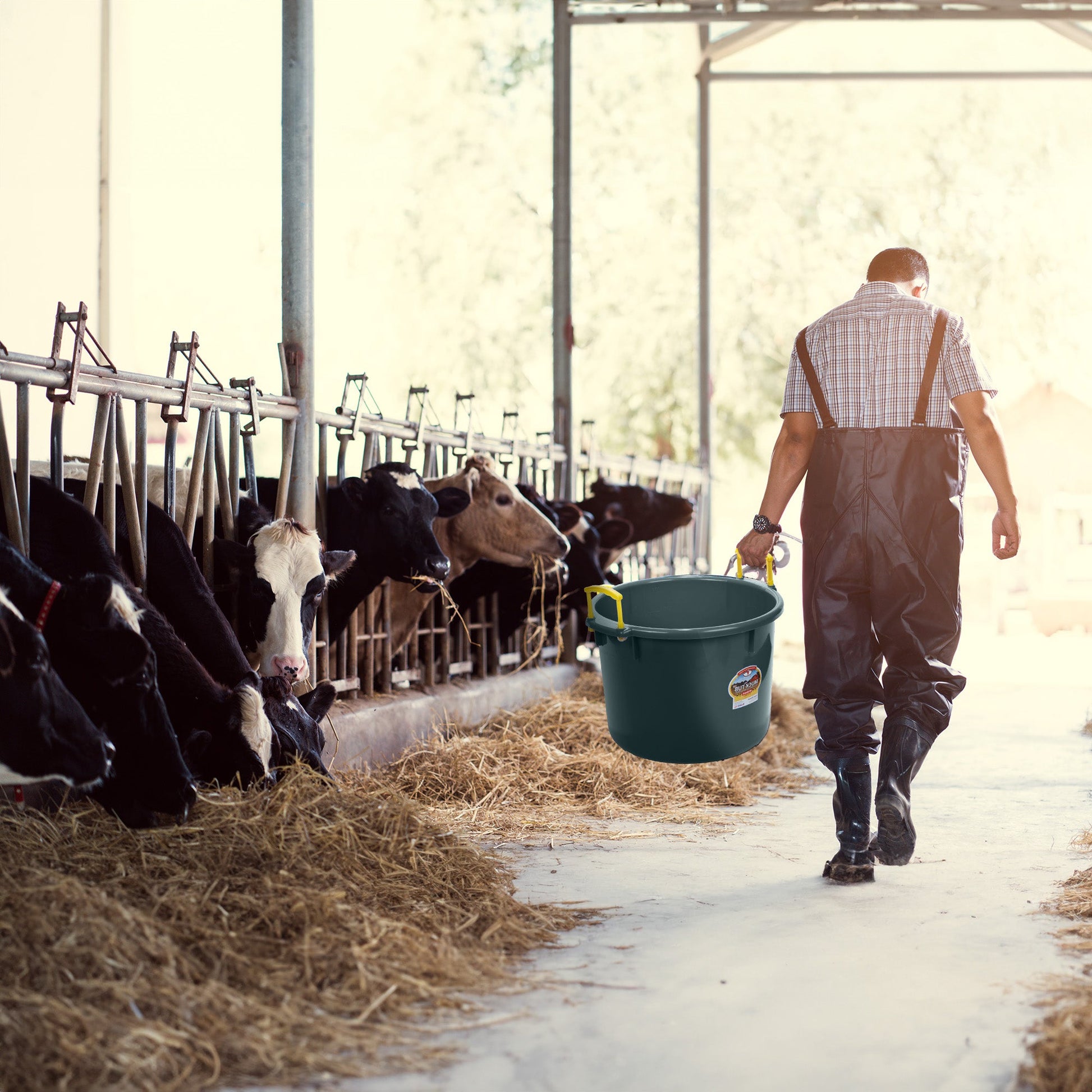 - Multi-purpose 40-quart plastic tote bucket ideal for mucking, barn cleanup, and gardening