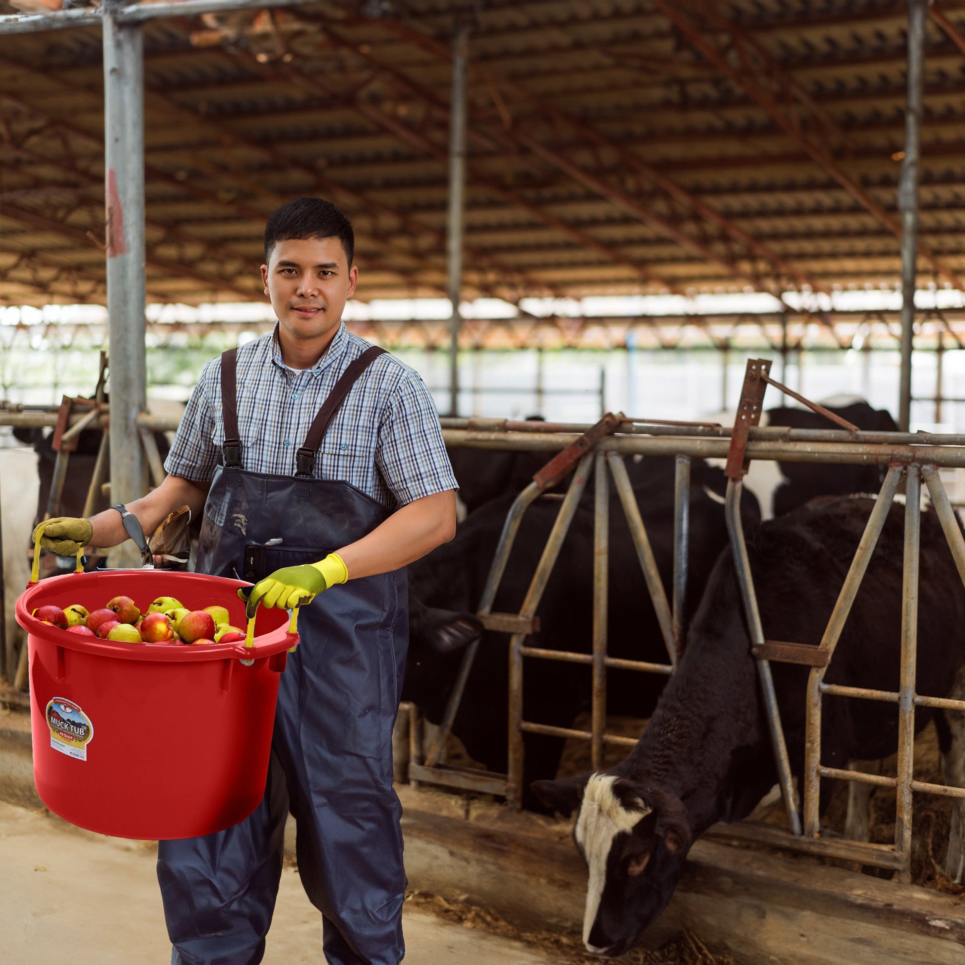 - Multi-purpose 40-quart plastic tote bucket ideal for mucking, barn cleanup, and gardening