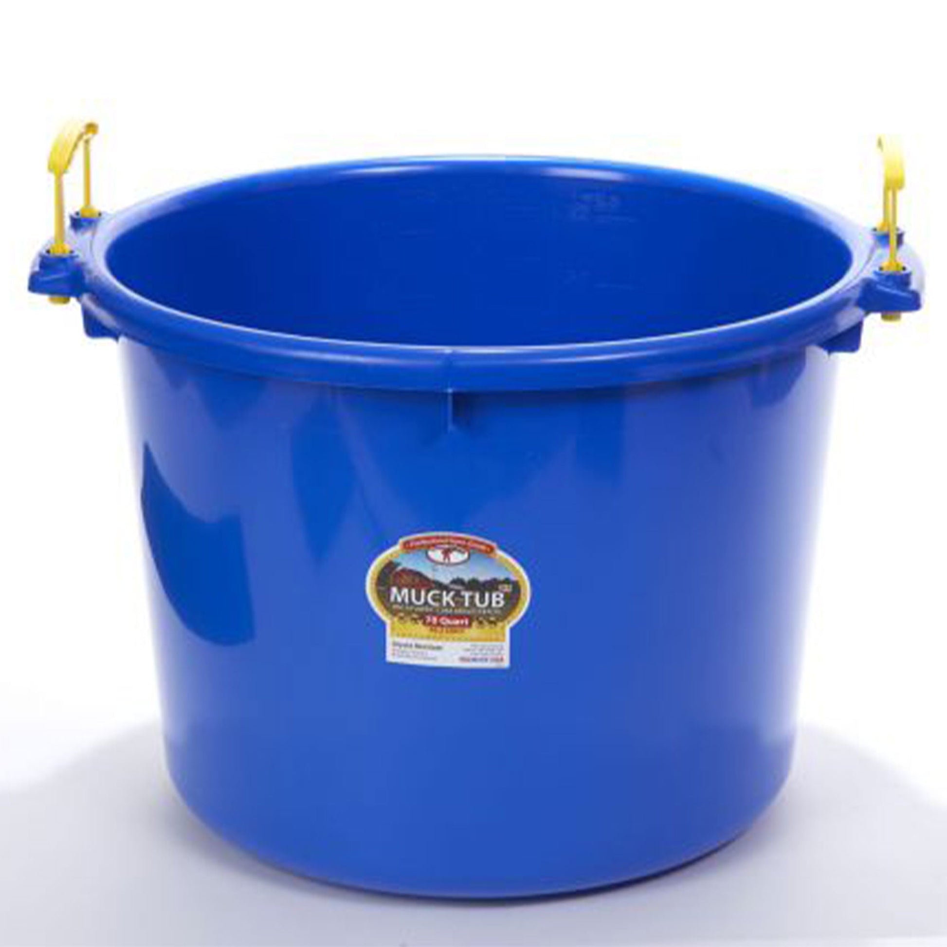 - Multi-purpose 70-quart plastic tote bucket ideal for mucking, barn cleanup, and gardening