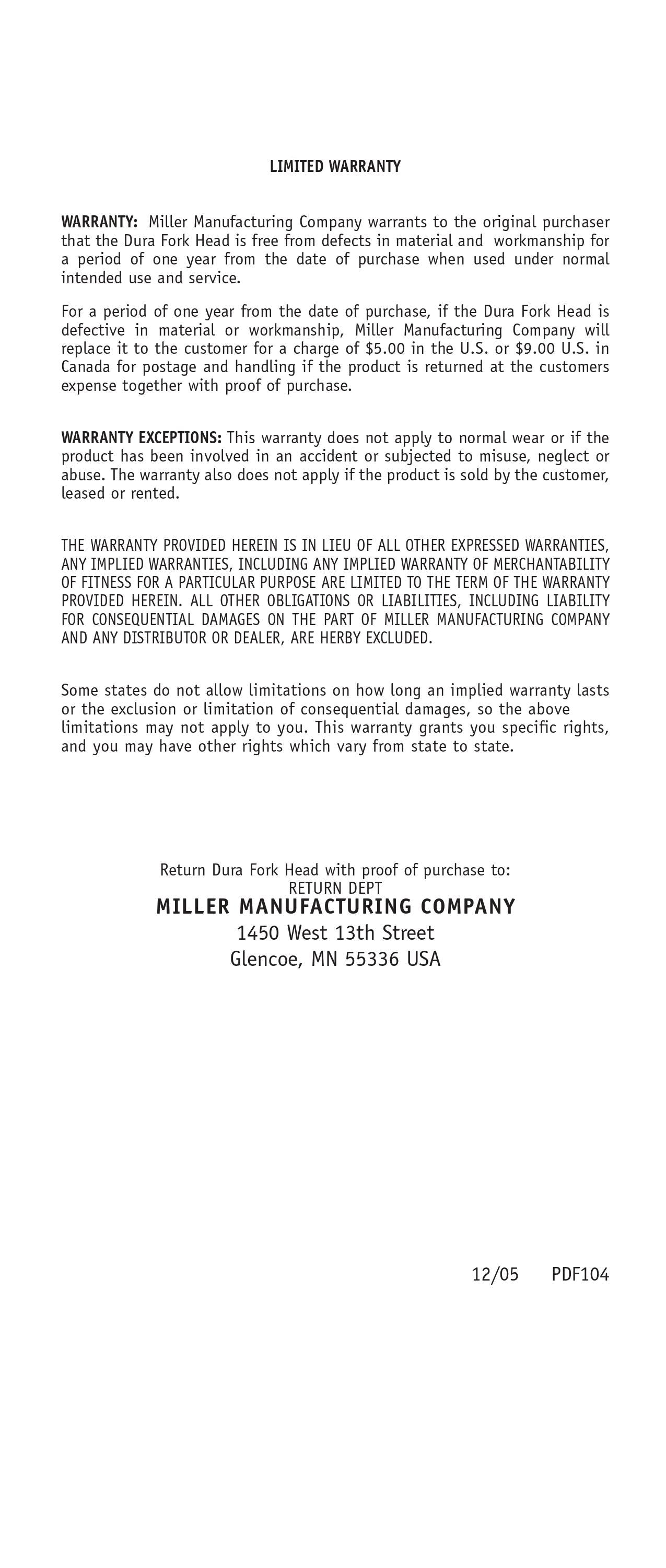 1 Year Limited Warranty