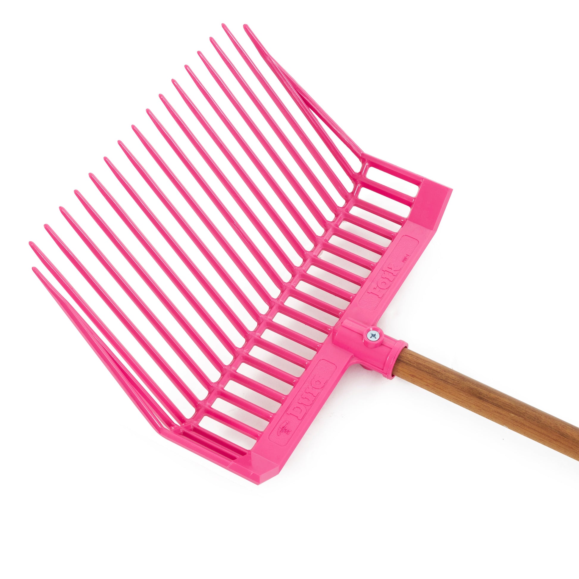 - Polycarbonate plastic head with elongated tines, specifically designed for handling manure