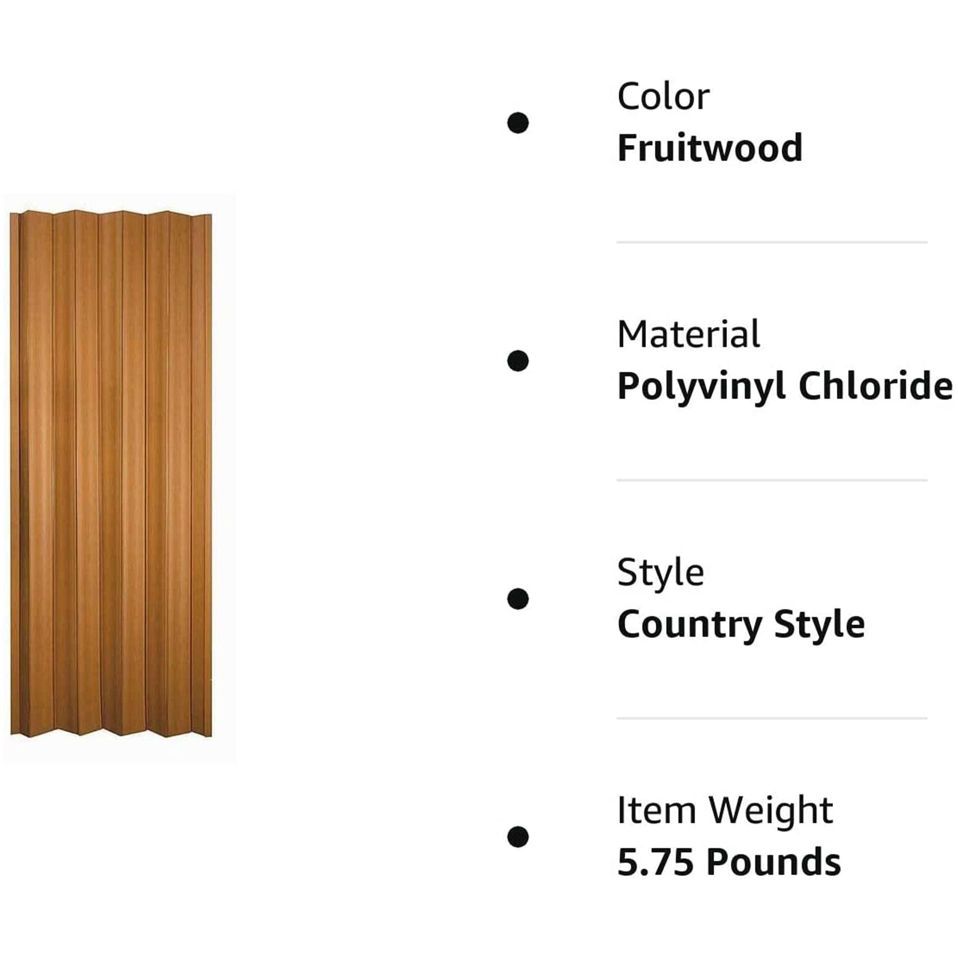 LTL Home Products Via 36" x 80" Vinyl Hinged Single Folding Door, Fruitwood