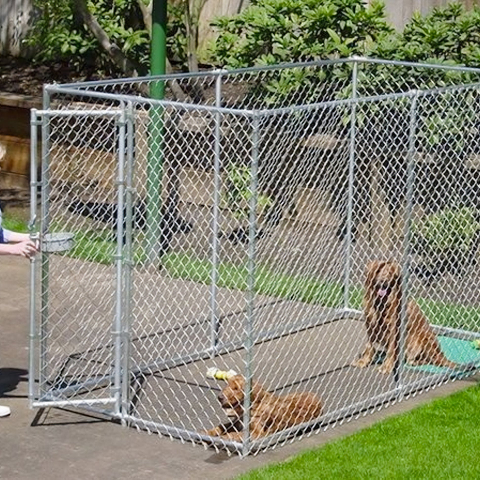 - Perfect for residential use, this box kennel is made with galvanized chain link and a steel frame