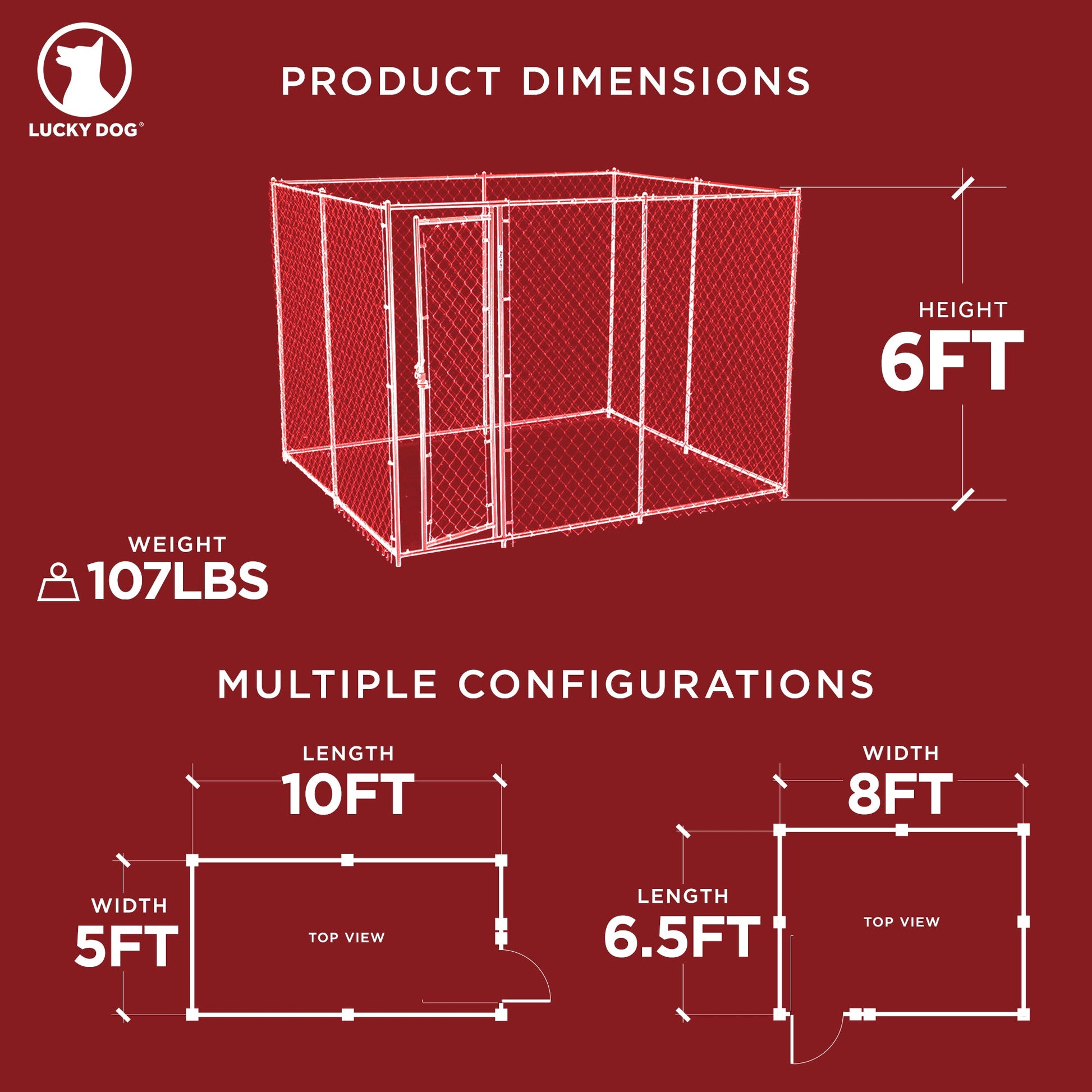 Give your dog a safe, secure area to call their own, whether you have the big back yard to boot or not, by investing in the quality and flexibility of the Lucky Dog 10 x 5 x 6 Ft. Chain Link Dog Kennel.