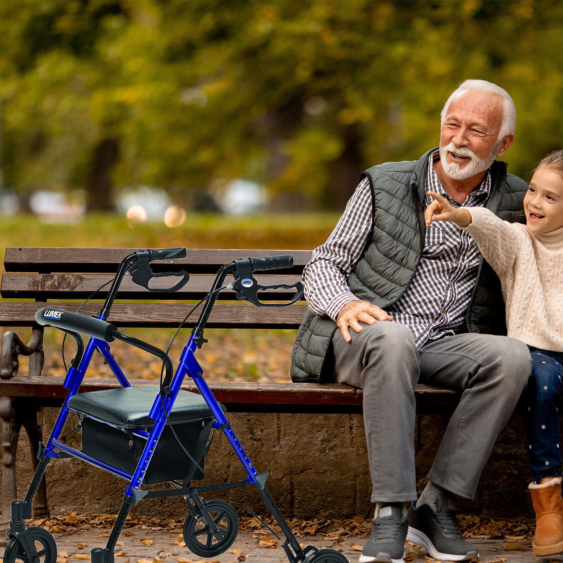 Avoid any uncomfortable traveling and walking. With this rolling walker, comfort is key. With a wide design for ample space, this walker and rollator accommodates seniors looking for a little extra room. With an integrated padded seat and backrest, you can get out into the world feeling great. Made for all-day use, this walking scooter includes comfortable, ergonomic handles you won't get tired of.