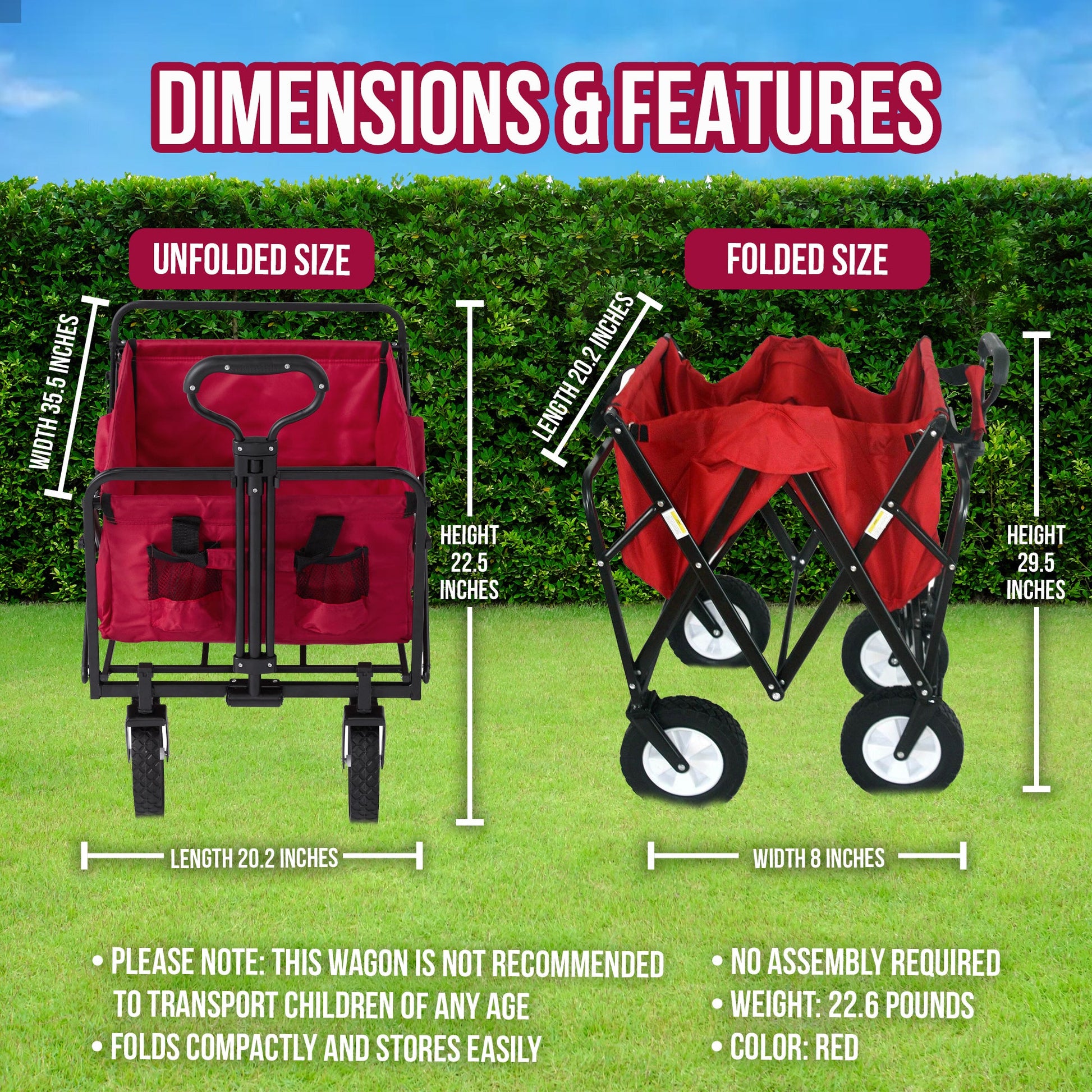 Mac Sports Collapsible Folding Outdoor Utility Garden Camping Wagon Cart, Red