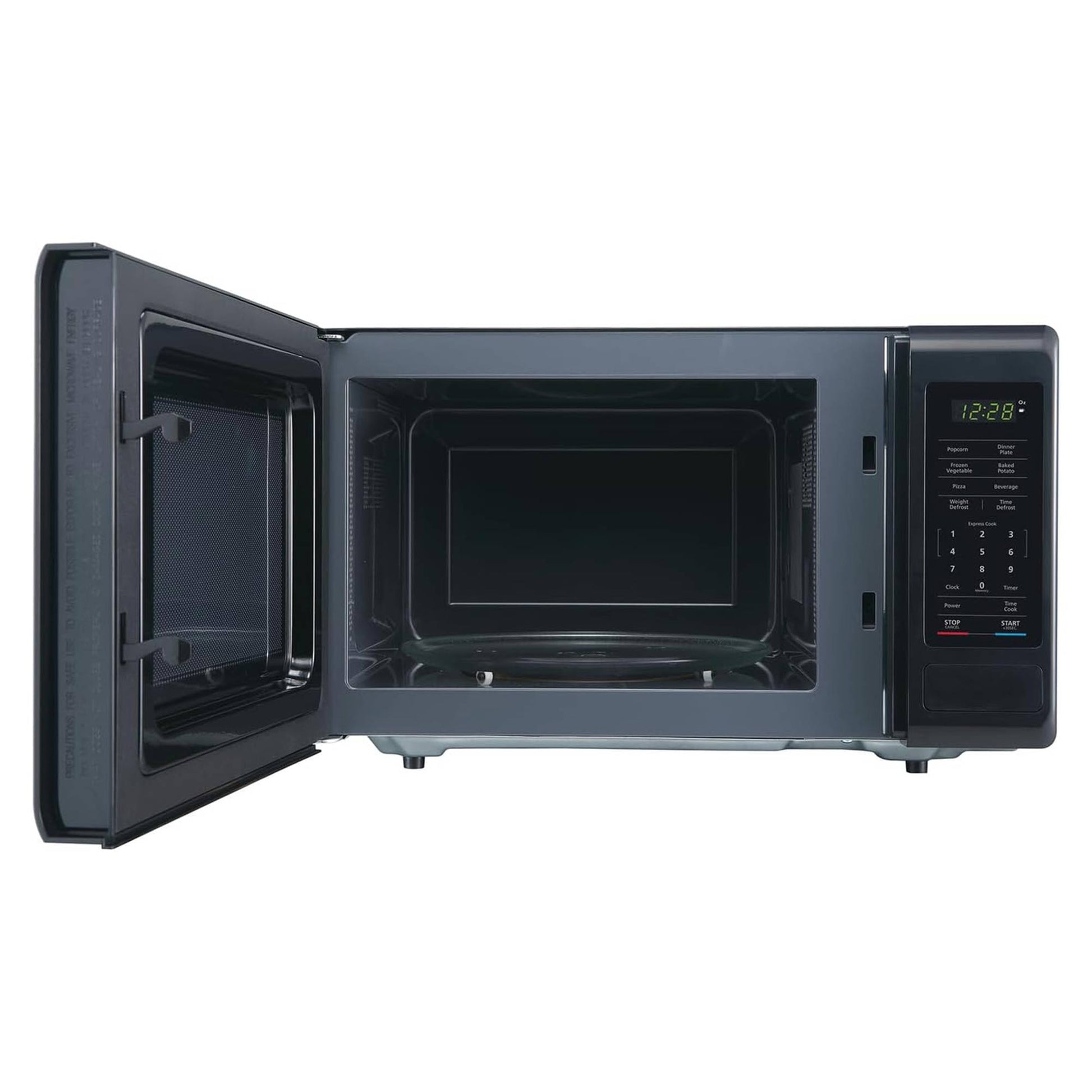 - Equipped with electronic controls, an LED display screen featuring a kitchen timer, express cooking functions for up to 6 minutes, and a convenient auto-defrost feature