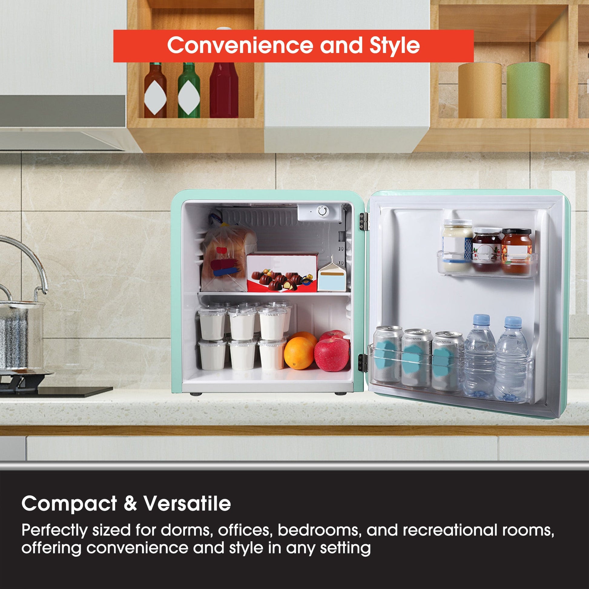 Chill your food and drinks in style with the Magic Chef 1.6 Cubic Feet Retro Style Mini Fridge.