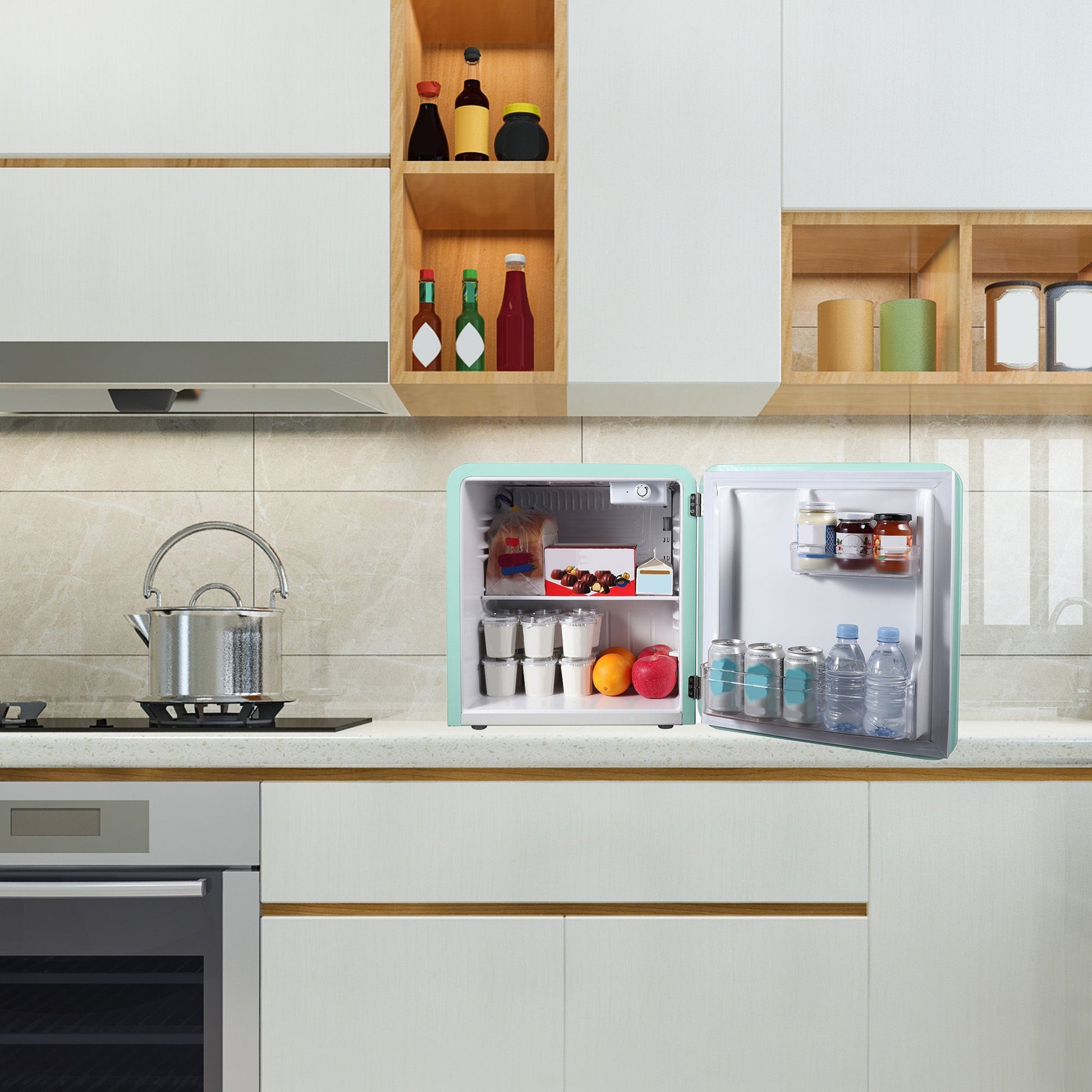 Magic Chef 1.6 Cubic Feet Retro Style Mini Fridge with Interior LED Light, Mint