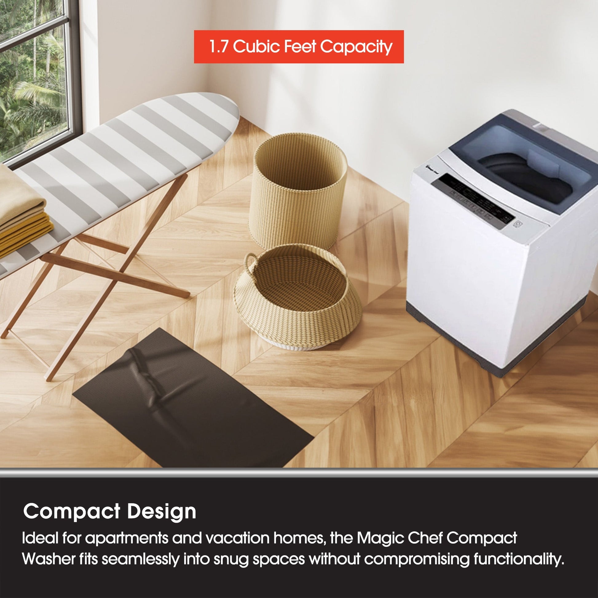 From bustling city apartments to cozy vacation homes, this Top-Load Compact Washer from Magic Chef is your ultimate space-saving solution, offering unparalleled convenience without compromise. Compact yet powerful, this washer is a savior for any space where every inch counts. Say hello to a world of streamlined laundry and reclaim your space with this indispensable companion.