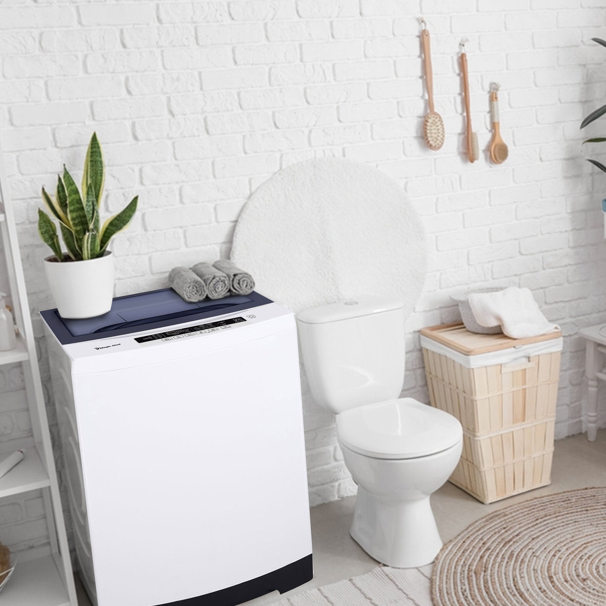 From bustling city apartments to cozy vacation homes, this Top-Load Compact Washer from Magic Chef is your ultimate space-saving solution, offering unparalleled convenience without compromise. Compact yet powerful, this washer is a savior for any space where every inch counts. Say hello to a world of streamlined laundry and reclaim your space with this indispensable companion.