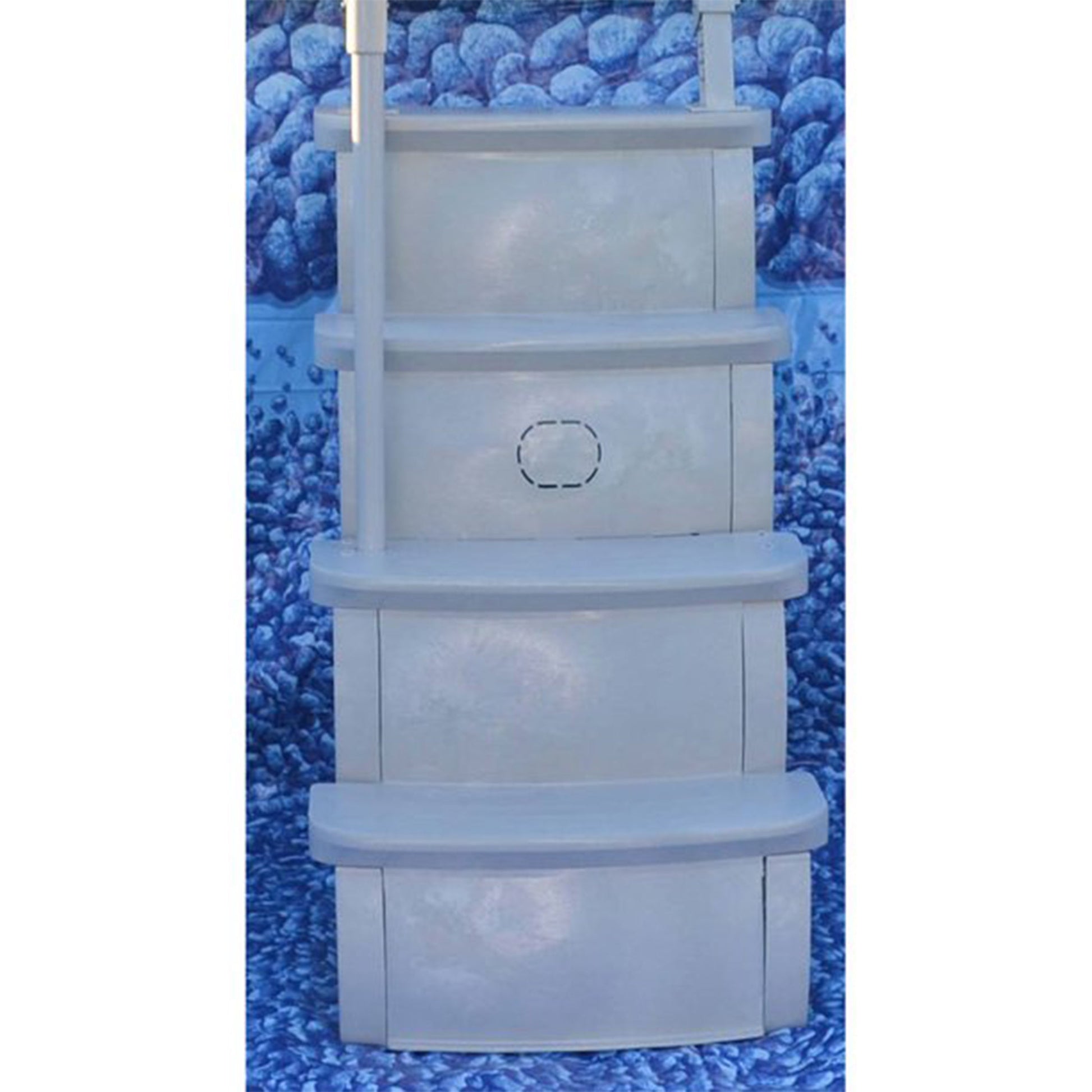 Specifically designed for smaller pools ranging between 48 and 54 inches tall, the 4 steps measuring 24 inches wide provide you with a comfortable transition into the swimming area. With the heavy-duty ladder on the outside of the pool (sold separately) and these steps for the interior, you get a solid footing into the pool, and the swing-up and the lift-and-lock feature ensures your safety. Thanks to the flow-thru design of these steps, your water circulation will be improved and you won't have to worry about algae buildup. With modification or reinforced hardware, a deck attachment is possible with this step ladder system. Made of high-impact corrosion-proof material, this Above Ground Swimming Pool Smart Step System is built to last.