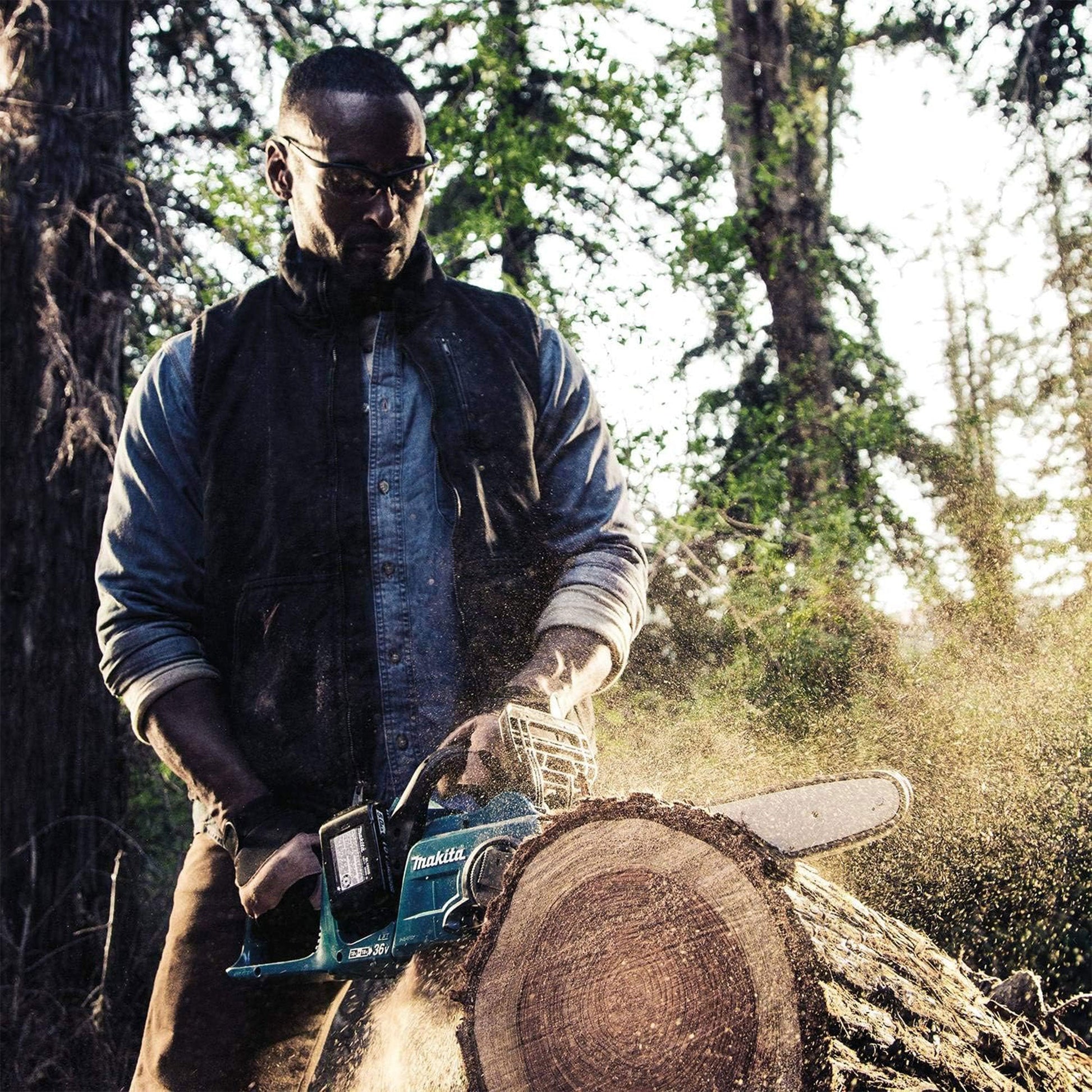 Makita LXT 36 Volt 16 Inch 4.0Ah Battery Powered Brushless Chainsaw Kit, Teal