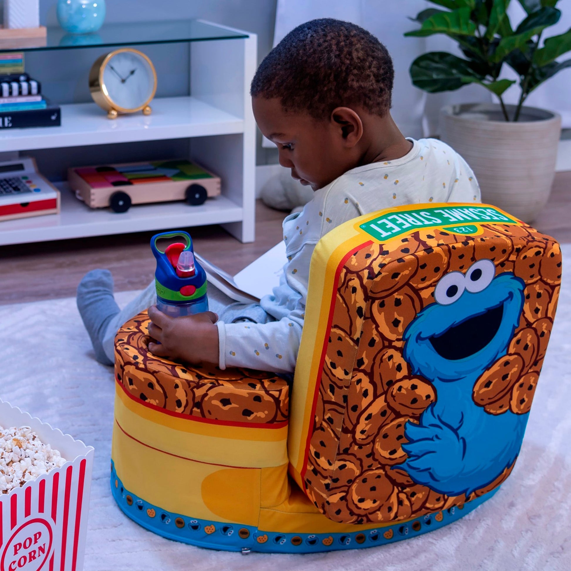 Marshmallow Furniture Flip-See-Do Comfy Foam Toddler Kid's Chair, Cookie Monster