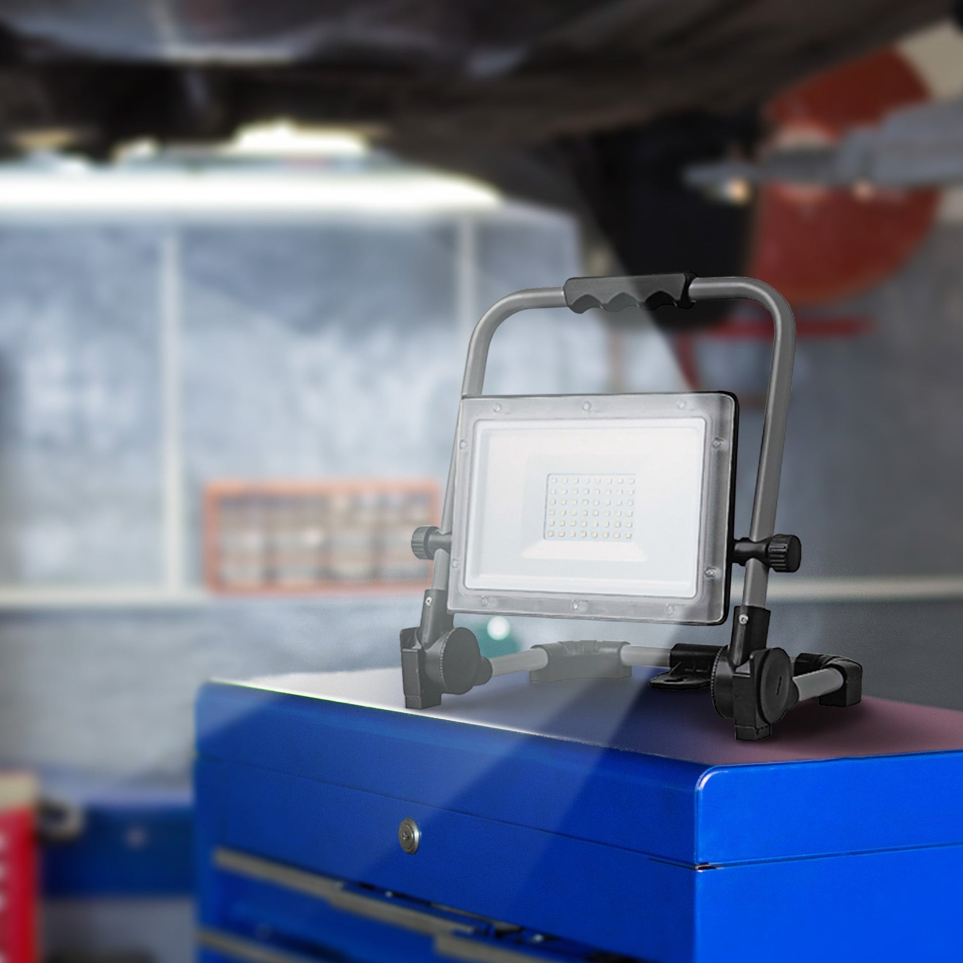 Boasting a powerful 2,000-lumen output, this 20-watt LED light provides exceptional brightness at a crisp 6,500 Kelvin color temperature. Whether you're in a workshop or on a job site, its durable construction with an IP54 rating to resist weather ensures reliable performance in various conditions.