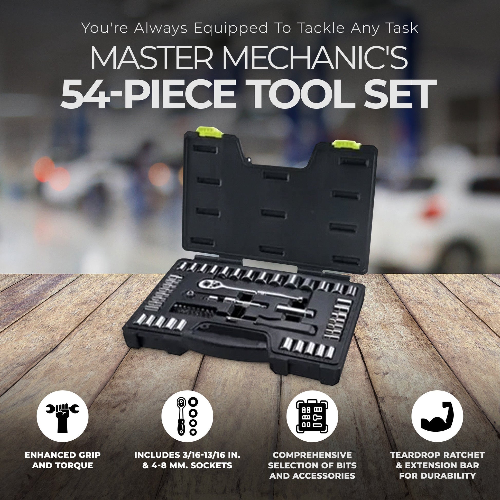 Get the job done right with the Master Mechanic 1/4 by 3/8-Inch Drive 54-Piece Mechanic's Tool Accessory Socket Set, meticulously engineered to meet the demands of automotive enthusiasts, DIYers, and professional mechanics alike. This comprehensive set is a testament to precision, versatility, and durability, ensuring you're always equipped to tackle any task with confidence.